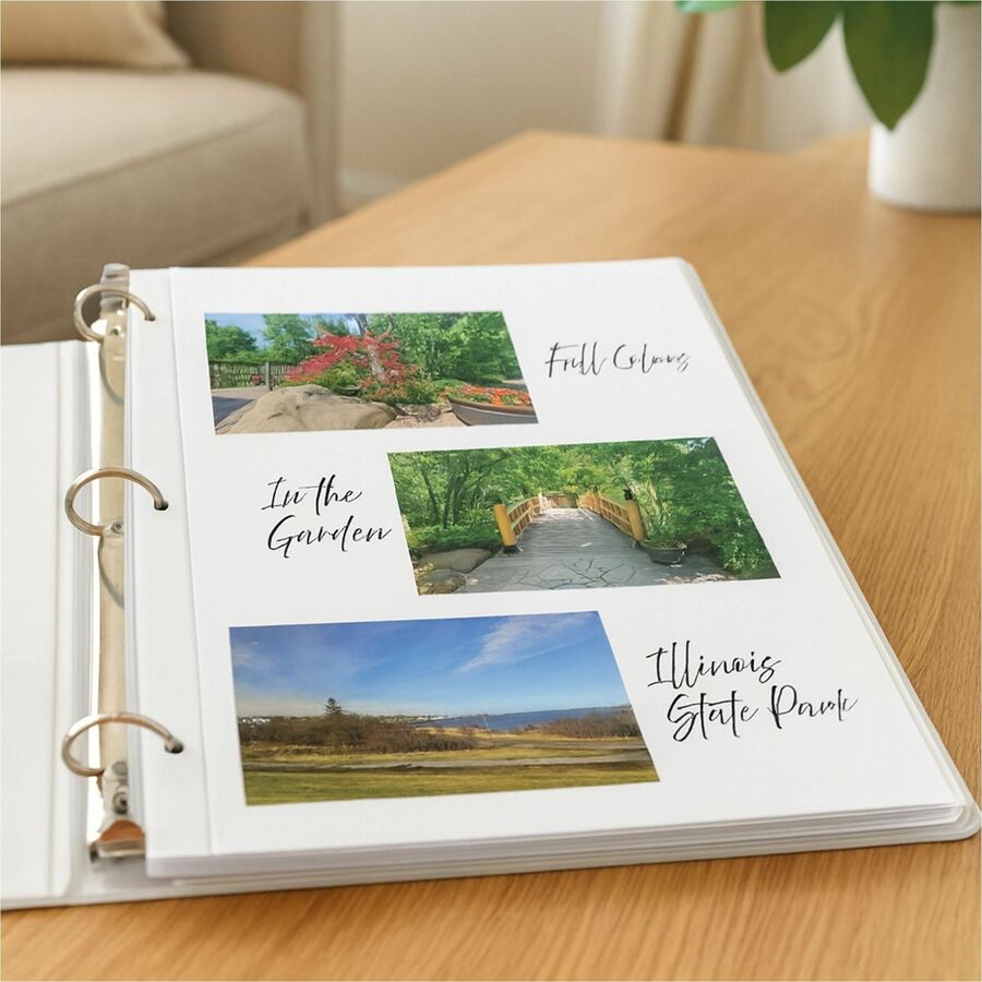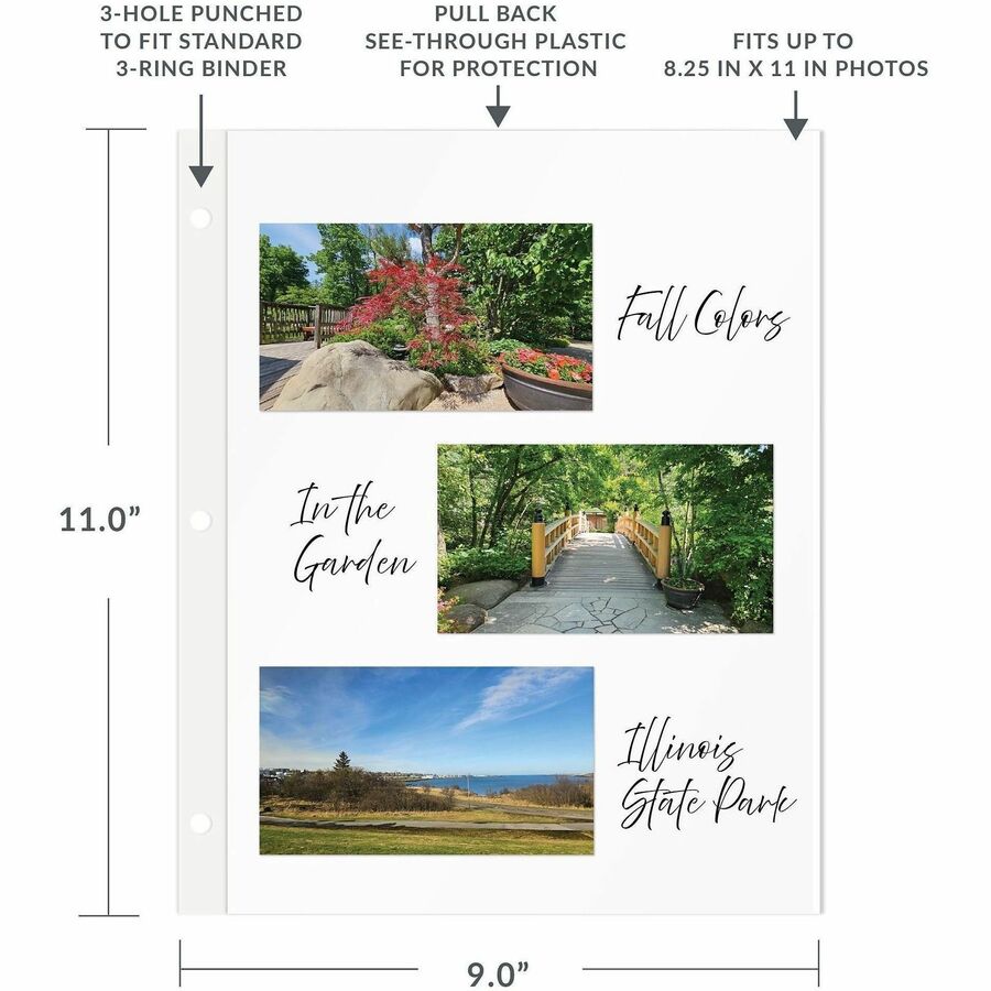 | Product Description | Photo mounting sheets organize your photos. Use to mount your photographs for storage in three-ring binders. Easy to use. Pull back see-through plastic, press photo onto adhesive sheet (reposition as necessary), and reapply plastic for secure protection. Reposition photos to your satisfaction. |