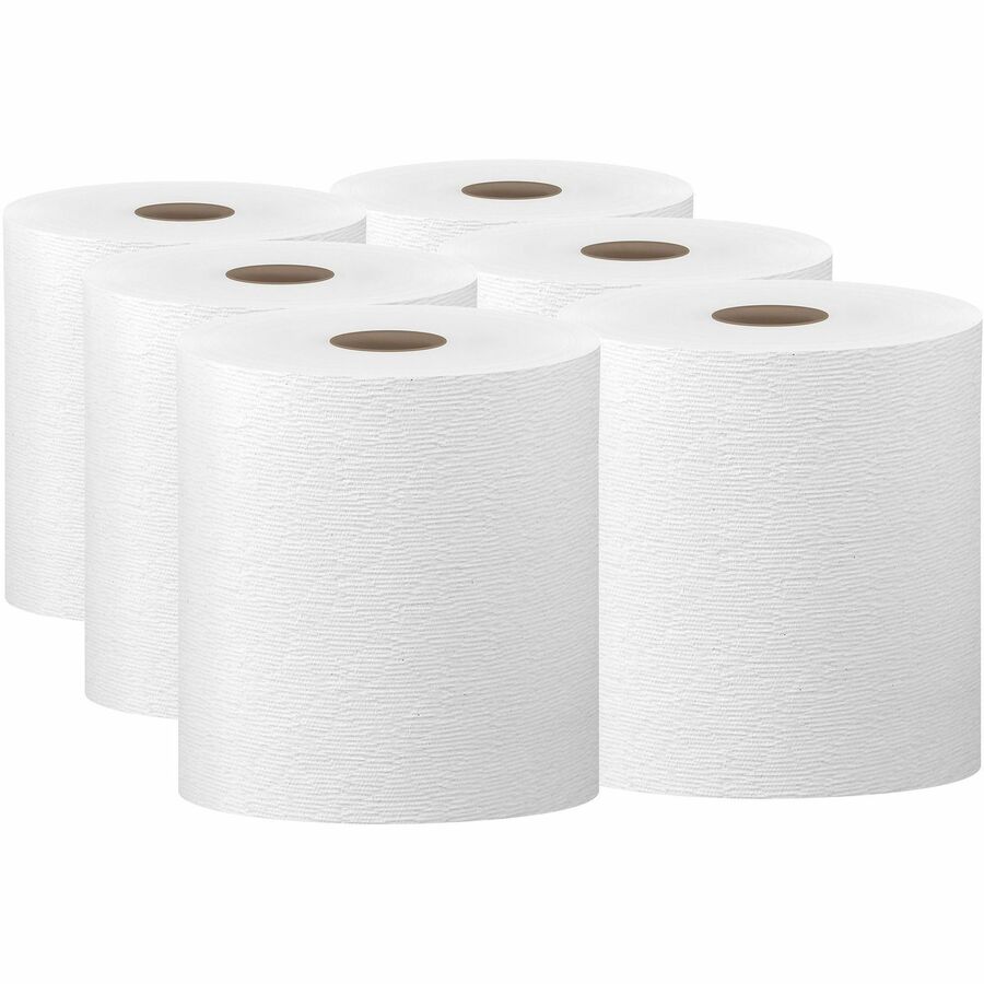 | Product Description | With a reliable balance of efficiency, performance and value, these Hard Roll Paper Towels, like other absorbent, single-use drying towels, help to greatly reduce the likelihood of spreading germs. Forced-air dryers and hot air dryers can take two or even three times as long to use as a paper towel. Germ counts are significantly lower following the use of a touch-free paper towel dispenser (like the compatible, Kimberly-Clark Professional Hard Roll Paper Towel Dispenser) - as much as a 200 percent decrease when compared with using either jet or hot air dryers. Rather than blowing germs into the air during use, you can neatly throw away paper towels. Now more gentle on the skin and with improved softness, these paper towel rolls offer excellent hand-drying performance so your guests will waste less. Absorbency Pockets absorb lots of water fast for superior hand-drying. With a 1.5" core size, rolls offer a universal fit with hard roll towel dispensers. |