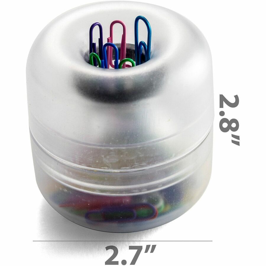 | Product Description | Euro-Style Designer Paper Clip Holder features a frosted, see-through look to let you know when you need to refill. Removable top lets you refill with ease. Magnetic top provides convenient access to paper clips (not included). |