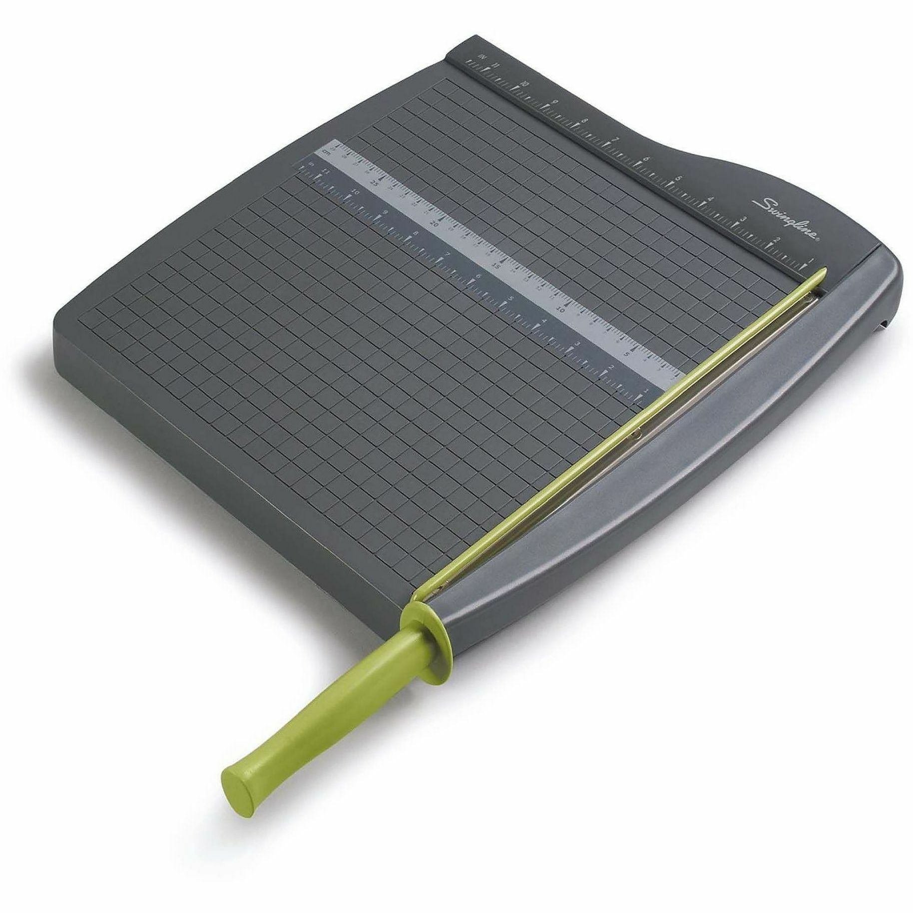 10 Sheet Cutting Capacity - 12" Cutting Length - 1.5" Height x 12.8" Width x 12" Length - Lightweight, Dual Scale Ruler, Alignment Grid, Safety Guard, Locking Latch, Non-slip Rubber Feet, Handle - Plastic - Graphite - 1 Each