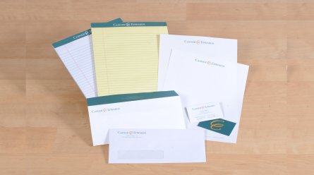 When the firm's management team decided to undertake the rebranding project, they immediately informed Tim Hatcher, the firm's ALL-STATE LEGAL sales representative. The rebrand was to include the website and stationery items - letterhead, envelopes, and business cards. As the project moved into the design phase, Tim worked closely with the management team to review the various designs and provide input on the potential print processes that could be employed to convey the new brand most effectively. He also provided consultative advice as to potential production pitfalls posed by each design. Once Casner & Edwards selected its final design, Tim suggested an additional enhancement to the letterhead: a custom CounsellorMark® watermark.