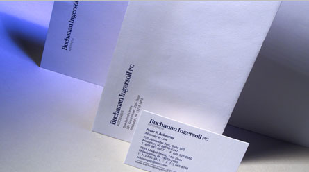 As one of the nation's top tier law firms, Buchanan Ingersoll's brand identity is managed throughout their stationery and easily applied to other marketing and promotional material. The multiple-color, offset printing option allowed the firm to maintain brand integrity, consistency and professional image.