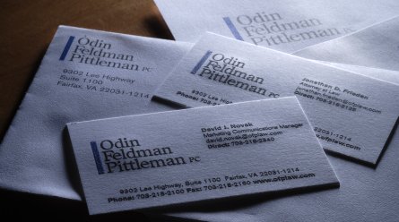 After investigating the technology on their own, Odin Feldman Pittleman consulted with ASL for guidance on the most effective size, color, production method, and positioning for the professionally printed QR code. The firm then ordered business cards with the code for one single attorney. When these cards were received, the firm was so pleased with them that we then put a process in place that allowed the firm to quickly and efficiently add similar QR codes to the other 55 attorneys' business cards.