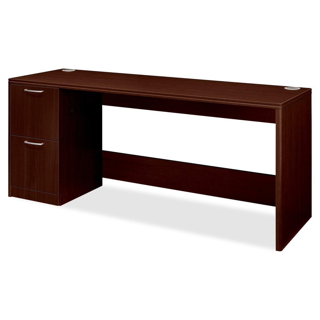 Stock #11808LNN29.5" Height x 72" Width x 24" Depth - Total Drawer(s): 2 - Single Pedestal on Left Side - Material: Wood Grain - Finish: Laminate, Mahogany - Grommet - 1 Each