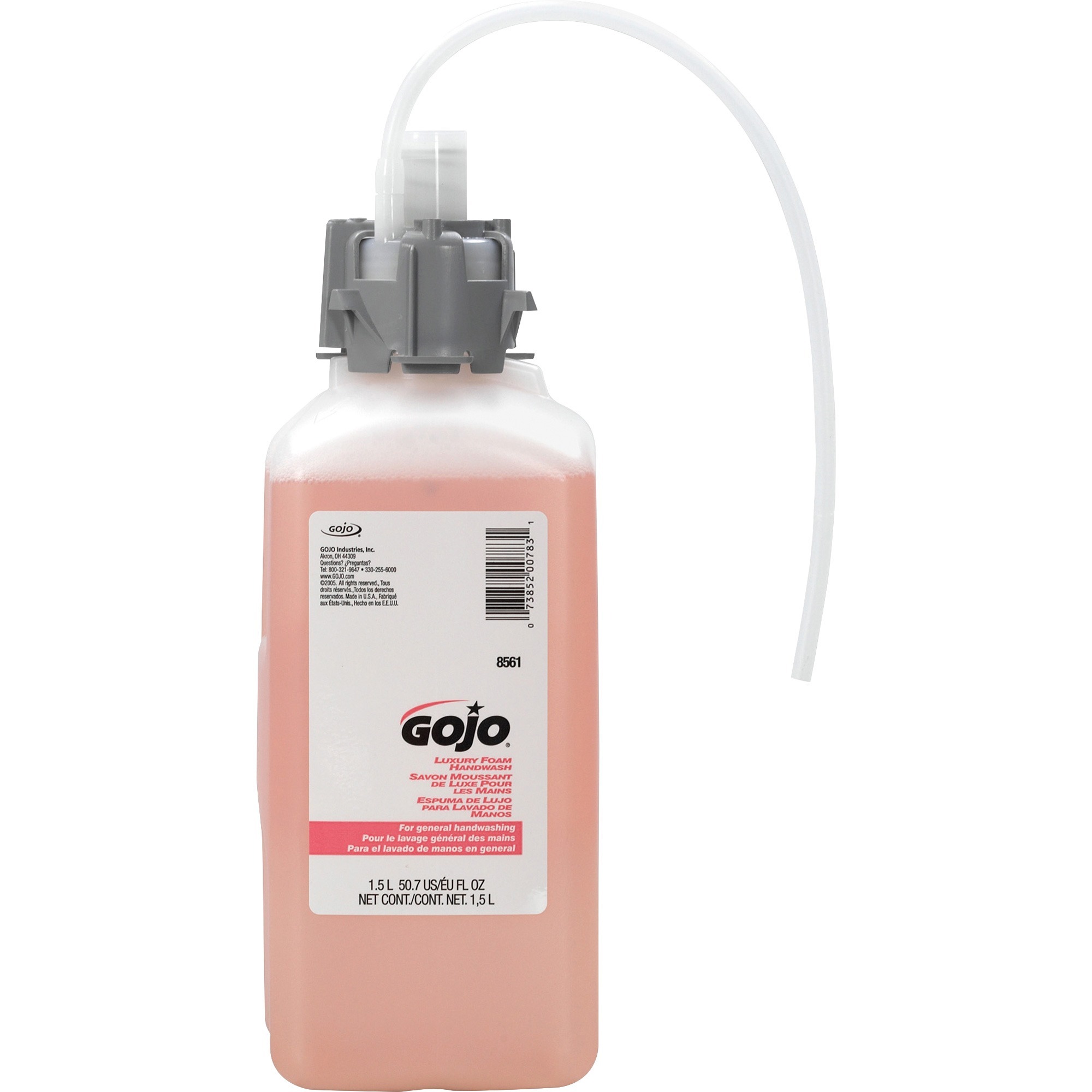 Mess-free, sanitary-sealed refill is quick and easy to load into the GOJO CX, CXi or CXT Touch-free Counter Mount Soap Dispensers and CXac Touch-Free AC-powered Counter Mount Dispenser. Rich, gentle luxury foam handwash is pre-lathered for a convenient, pleasing experience. Use for general, light-duty cleaning. Handwash features a translucent pink color, cranberry fragrance and fresh dispensing valve. Refill snaps into place with audible click. |