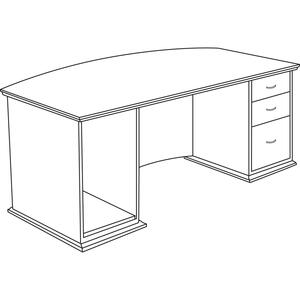 Right-pedestal bowfront desk is part of the Lorell 90000 Series that is made of select Cherry hardwood veneers. The catalyzed lacquer top coat makes it stain-resistant and scratch-resistant. Contemporary curvilinear-style pulls on drawers have a lustrous nickel finish. One pedestal includes two box drawers and one file drawer that accommodates letter-size and legal-size filing. Drawers open smoothly on full-extension ball bearings. The other area offers an open compartment to store your CPU. Desk also features a grommet in the full-height modesty panel for easy cord management. |
