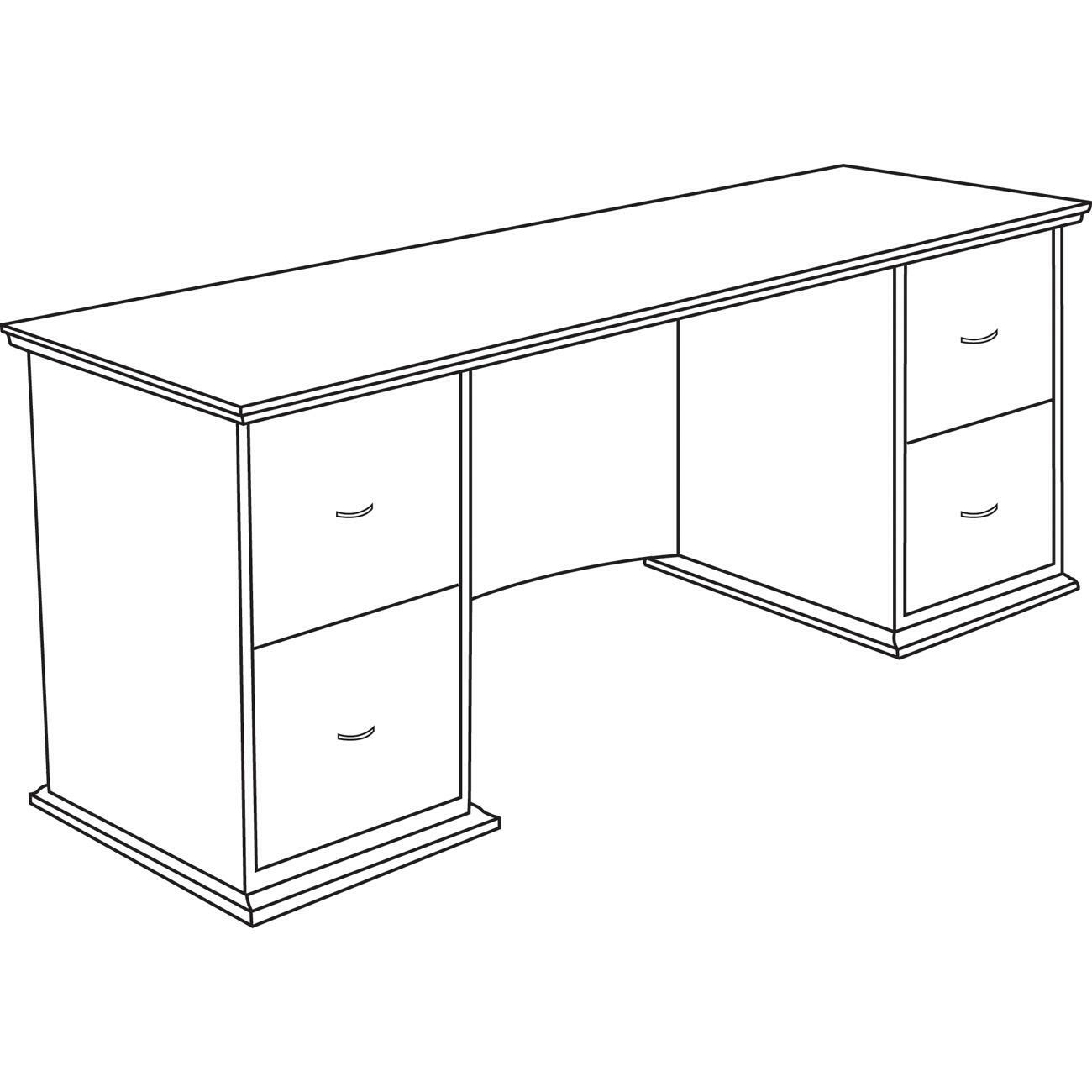 Double-pedestal credenza is part of the Lorell 90000 Series that is made of select hardwood veneers. The catalyzed lacquer top coat makes it stain-resistant and scratch-resistant. Contemporary curvilinear-style pulls on drawers have a lustrous nickel finish. Each pedestal includes two file drawers that accommodate letter-size and legal-size filing. Drawers open smoothly on full-extension ball bearings. Credenza also features a grommet in the full-height modesty panel for easy cord management. |