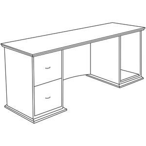 Left-pedestal credenza is part of the Lorell 90000 Series that is made of select hardwood veneers. The catalyzed lacquer top coat makes it stain-resistant and scratch-resistant. Contemporary curvilinear-style pulls on drawers have a lustrous nickel finish. Left pedestal includes two file drawers that accommodate letter-size and legal-size filing. The right side of the credenza offers an open compartment for CPU storage. One grommet in the full-height modesty panel provides easy cord management. |