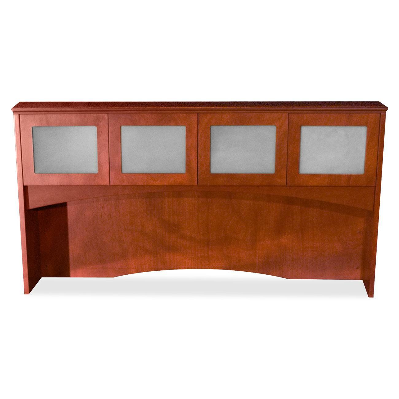 Hutch offers a perfect way to add overhead storage to appropriately sized Lorell 90000 Series desks and credenzas. Series is made of select Mahogany hardwood veneers. The catalyzed lacquer top coat makes it stain-resistant and scratch-resistant. Four doors conceal your belongings and feature hardwood veneers that frame frosted glass for a professional look. Hutch offers an arched bottom for cord management that complements the arched accent under the storage compartment. Overhead storage meets or exceeds applicable ANSI/BIFMA standards. |