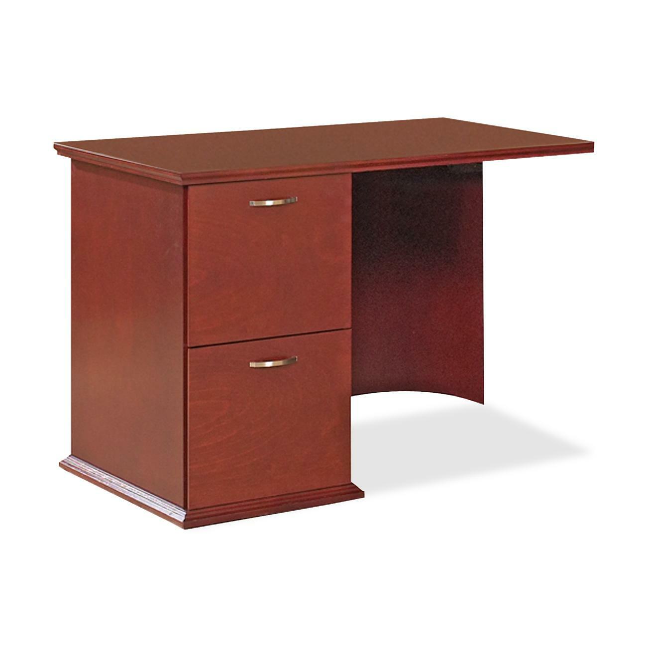 Left-pedestal return is part of the Lorell 90000 Series that is made of select Mahogany hardwood veneers. The catalyzed lacquer top coat makes it stain-resistant and scratch-resistant. Contemporary curvilinear-style pulls on drawers have a lustrous nickel finish. Attach the return to credenzas and desks of the Lorell 90000 Series to create the configuration that suits your needs. The pedestal includes two file drawers that accommodate letter-size and legal-size filing. Drawers open smoothly on full-extension ball bearings. Return also features a full-height modesty panel. |