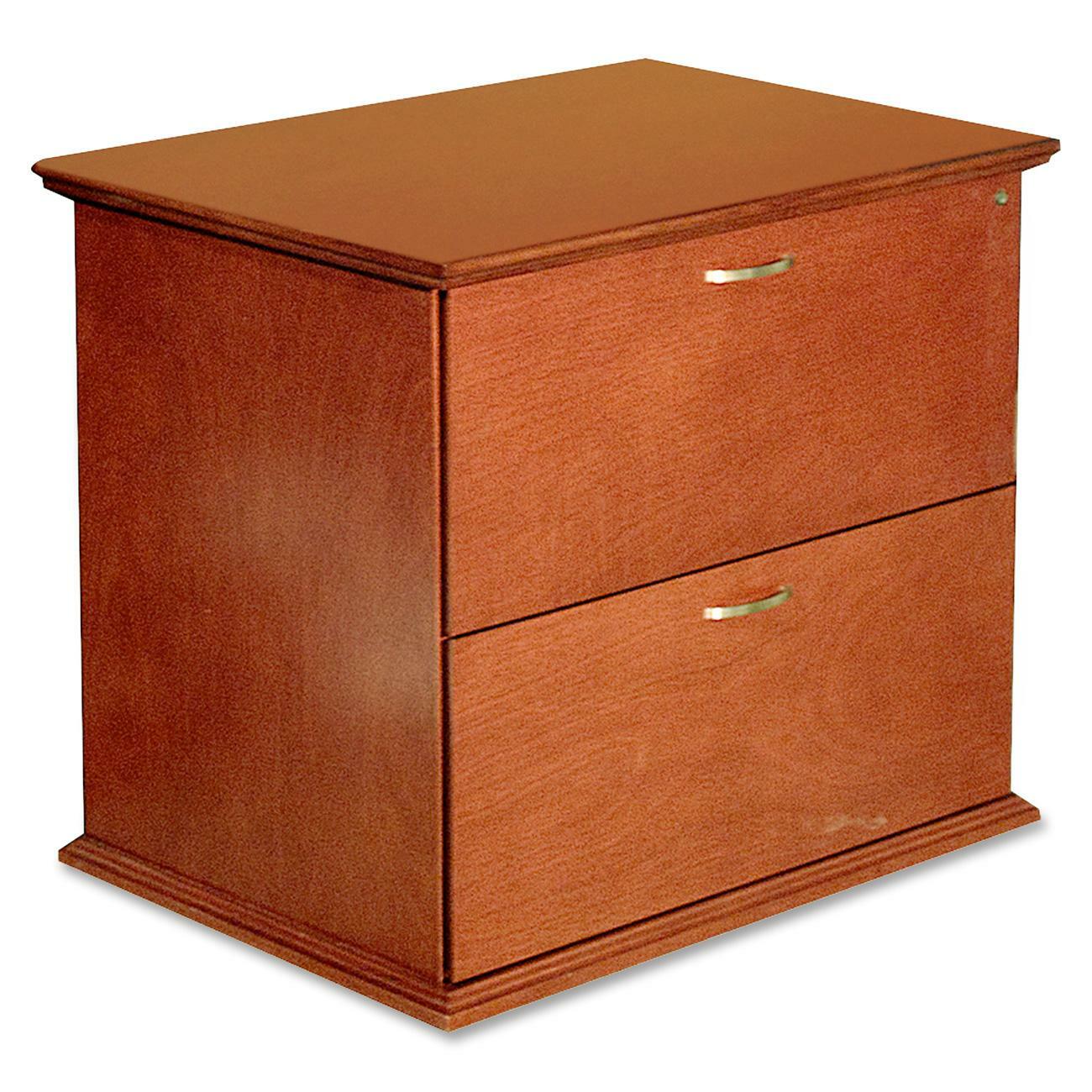 Lateral file is part of the Lorell 90000 Series that is made of select Cherry hardwood veneers. The catalyzed lacquer top coat makes it stain-resistant and scratch-resistant. Contemporary curvilinear-style pulls on drawers have a lustrous nickel finish. Two file drawers accommodate letter-size and legal-size filing. Drawers fully extend on ball bearings for smooth opening. Lateral file easily accommodates the bookcase hutch (sold separately) of the series for overhead storage. |