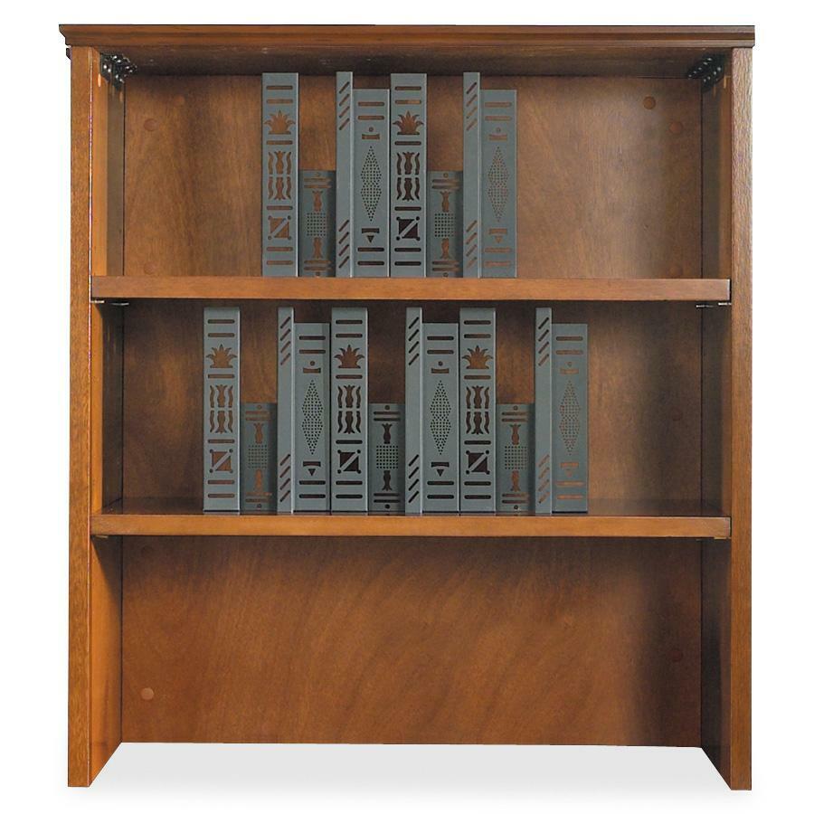 Bookcase hutch offers a perfect way to add overhead storage to Lorell 90000 Series two-drawer lateral files. Series is made of select Cherry hardwood veneers. The catalyzed lacquer top coat makes it stain-resistant and scratch-resistant. The two shelves are easily adjustable. Hutch sets easily on the lateral file and features nonskid feet to keep the hutch secure. Hutch meets or exceeds applicable ANSI/BIFMA standards. |