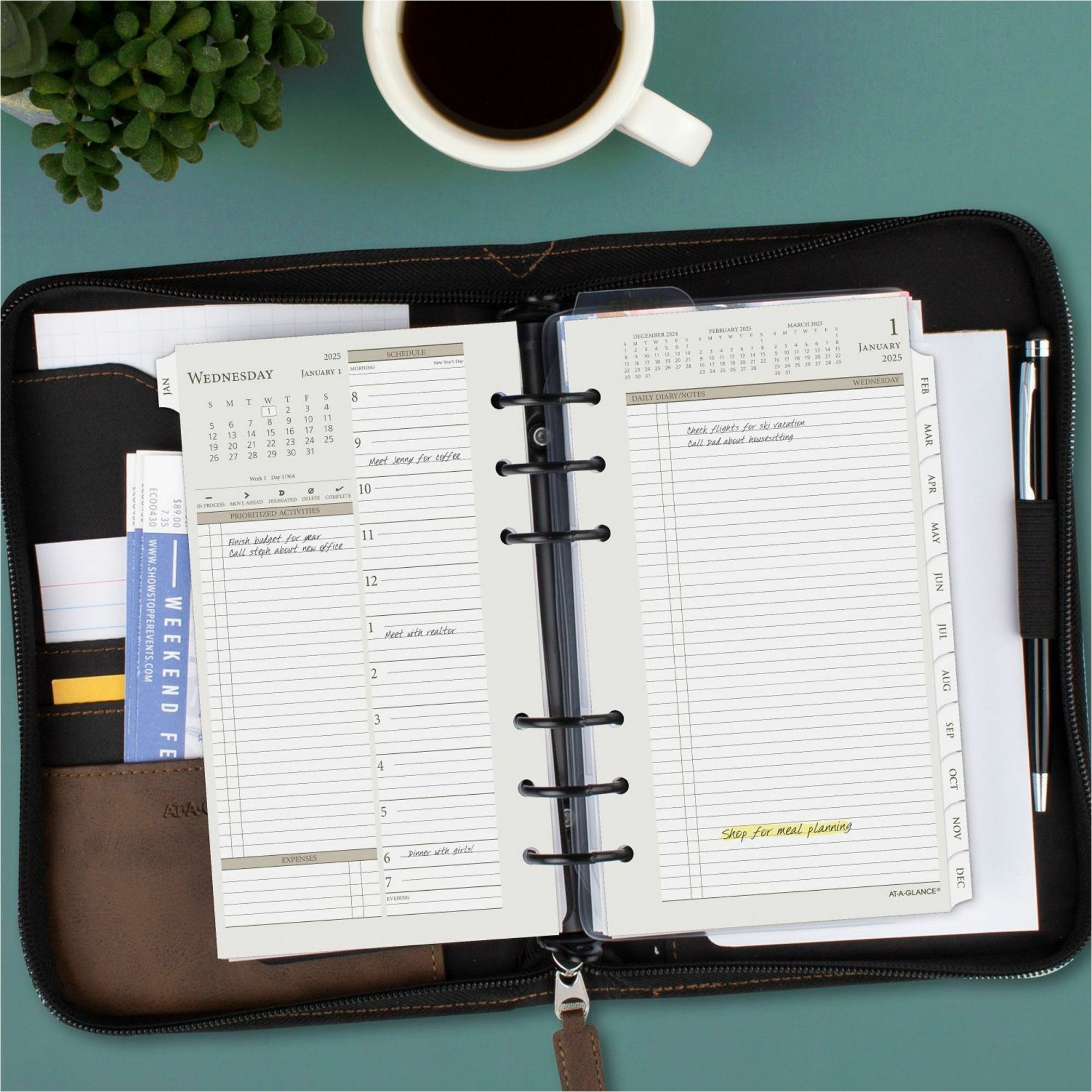Stock #AAG471225Julian Dates - Daily, Monthly - 1 Year - January 2025 to December 2025 - Hourly - 1 Day Double Page Layout - 3 3/4" x 6 3/4" Sheet Size - White Sheet - 6-ring - White, Cream - Paper - Tabbed, Ruled, Portable - 1 Each