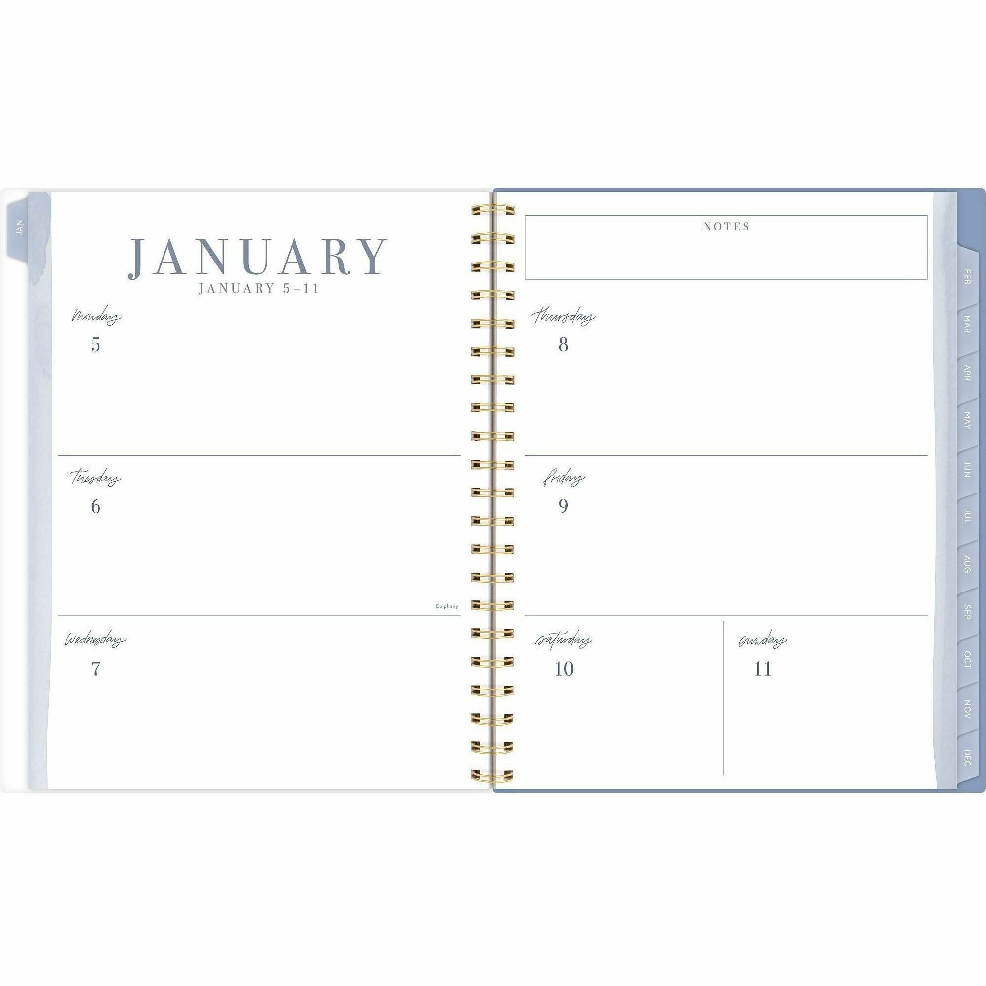 - Flexible weekly spreads with unruled planning space and a section for notes