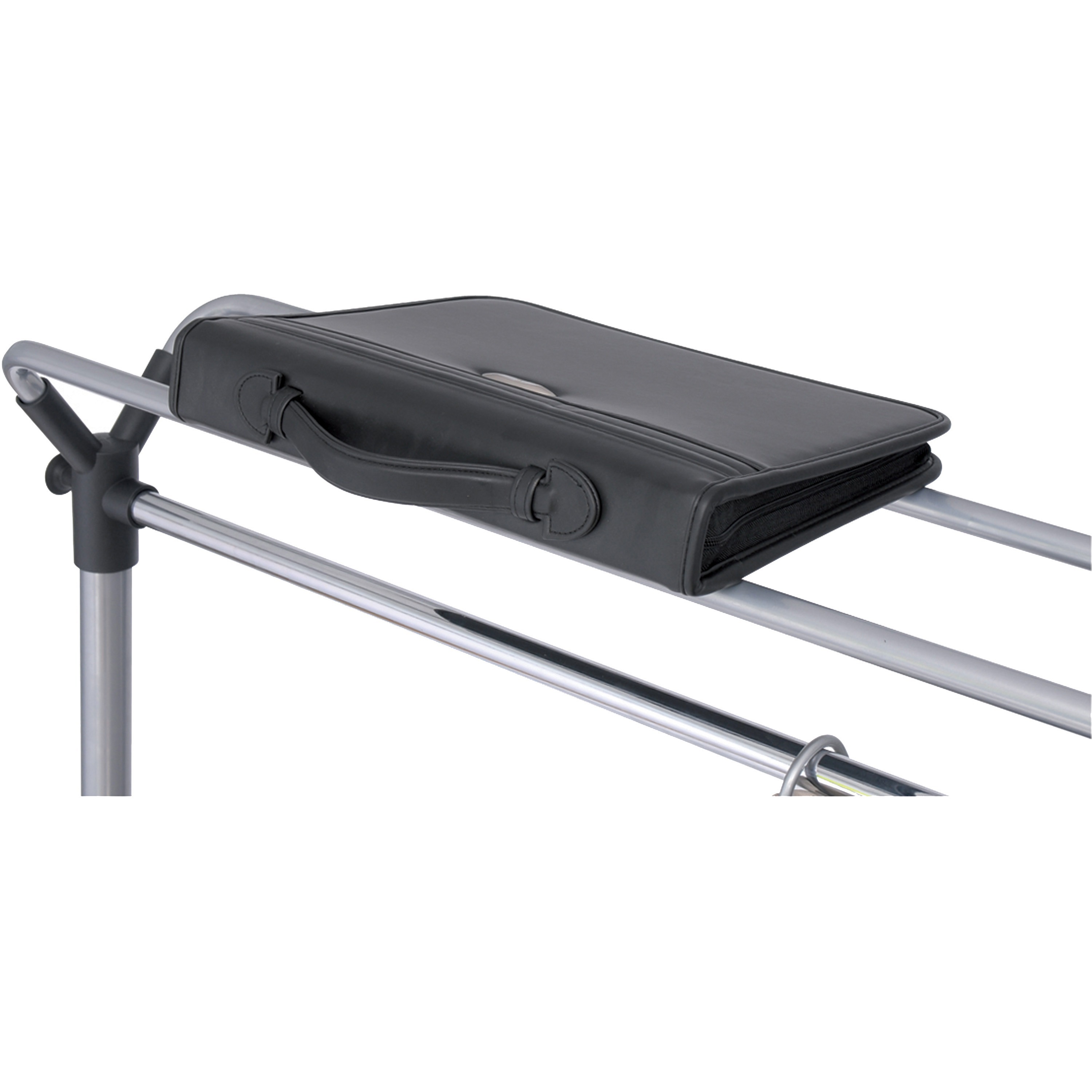| Product Description | Sturdy double-sided garment rack holds 50 coat hangers (sold separately) on its 55-3/8" long hanging bar. Open design allows hanging from either side. Upper shelf is designed for luggage and hand purses. Plastic hooks on either end allow hanging of accessories. Rack has a silver powder-coat finish and four roller casters (with two that lock) for easy mobility. |