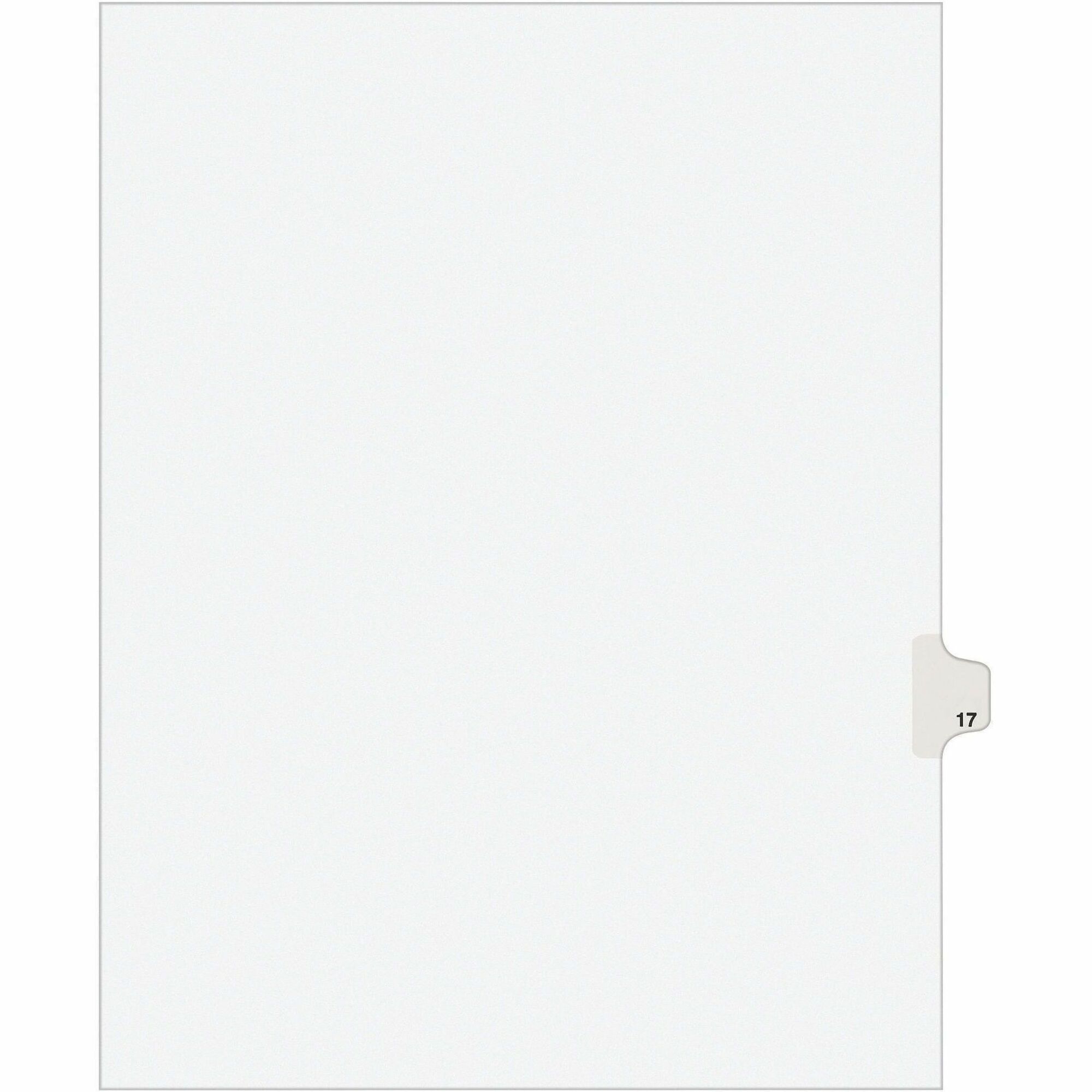 1 Printed Tab(s) - Digit - 17 - 1 Tab(s)/Set - 8.5" Divider Width x 11" Divider Length - Letter - White Paper Divider - Paper Tab(s) - 20% Recycled - Reinforced Tab, Rip Proof, Unpunched - 1 Pack