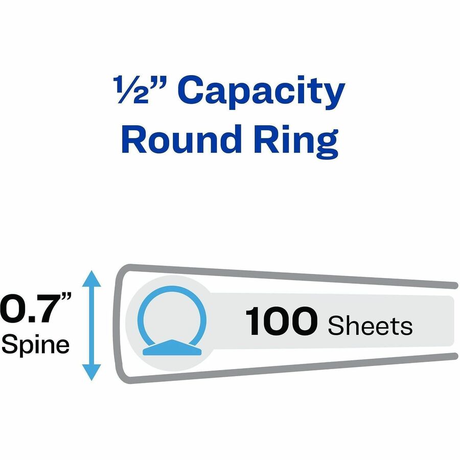 1/2" Binder Capacity - Letter - 8 1/2" x 11" Sheet Size - 100 Sheet Capacity - 3 Ring(s) - Fastener(s): Round Ring - Pocket(s): 2, Internal - Vinyl, Chipboard - Black - 1 lb - Gap-free Ring, Exposed Rivet, Non Locking Mechanism, Clear Overlay - 1 Each