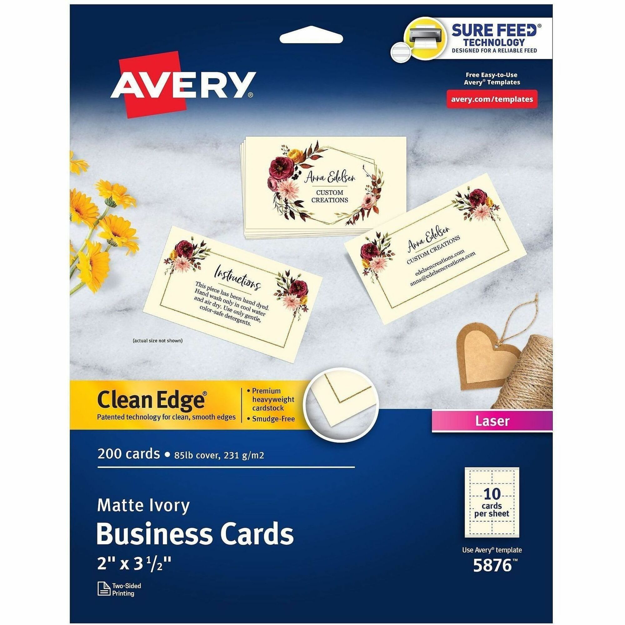 Avery® Business Cards, Ivory, True Print(R) Two-Sided Printing, 2" x 3-1/2" , 200 Cards