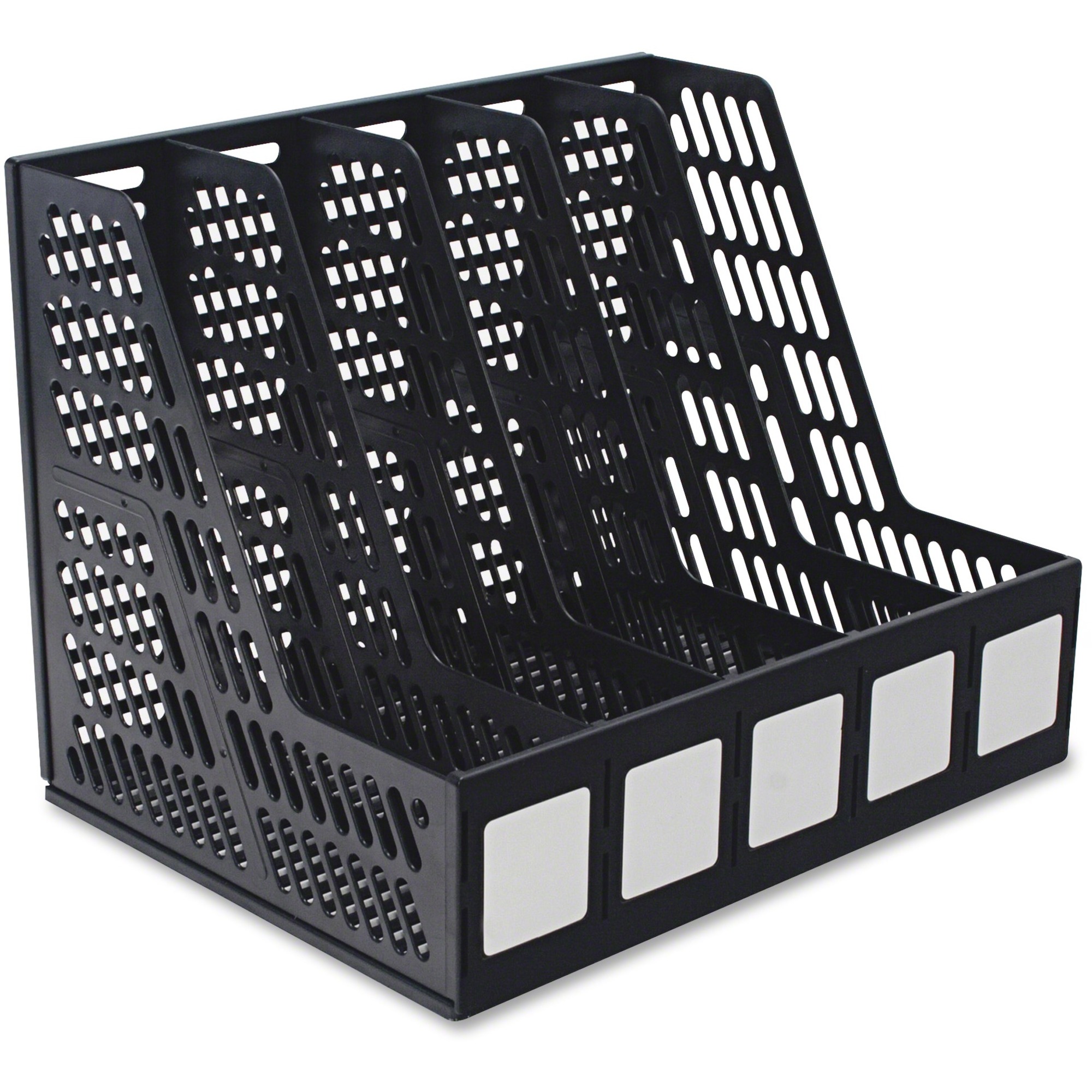 | Product Description | Five-compartment literature file organizes your files, magazines or notebooks on your desk. Large white labels are displayed on the front to easily label each compartment. Literature file is made of plastic for a durable, lightweight design. Compartments hold letter-size documents and have an open top to store taller documents. |