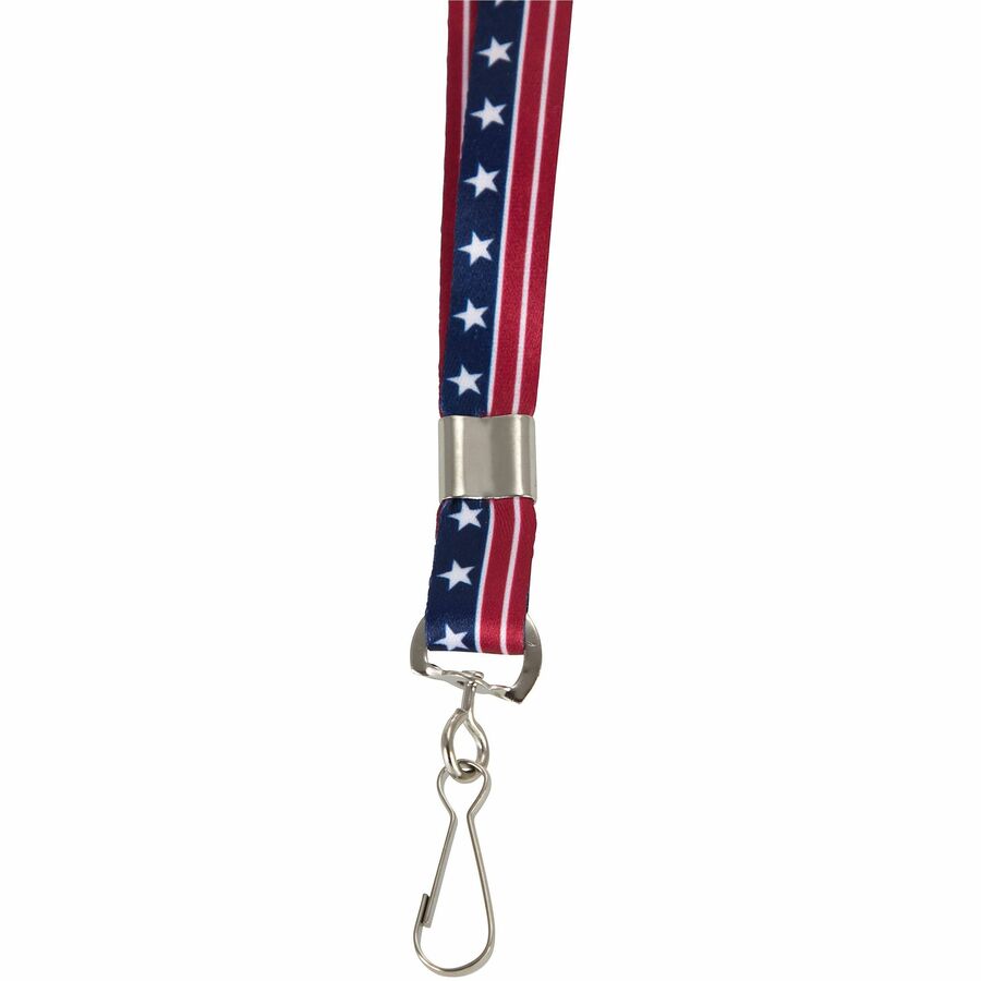 Patriotic Lanyard features a J-hook to attach your keys, ID badge, or cell phone. Patriotic colors are printed in brilliant red, white, and blue. |