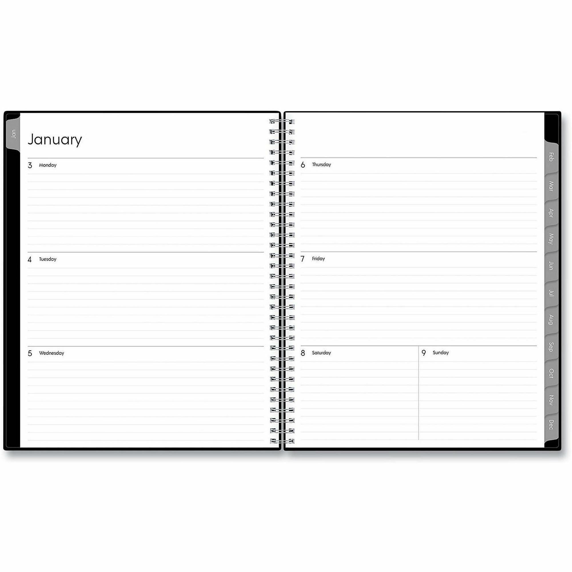 Planner features a classic design to give you the professional exterior you're looking for along with the interior content you rely on to manage your everyday scheduling. Weekly calendar view per two-page spread offers plenty of space for your daily schedule, reminders and notes. Monthly calendar view per two-page spread offers a visual overview of your time. Coated monthly calendar tabs help you quickly find your appointments and stay on track throughout the year. Thick, premium-quality pages reduce ink bleed-through to ensure your writing stays legible on every page. Double-wire binding allows pages to turn smoothly and keeps your planner flat on surfaces for easier writing. Planner includes a yearly goals page, contacts, important dates, notes pages and four years of holidays. |
