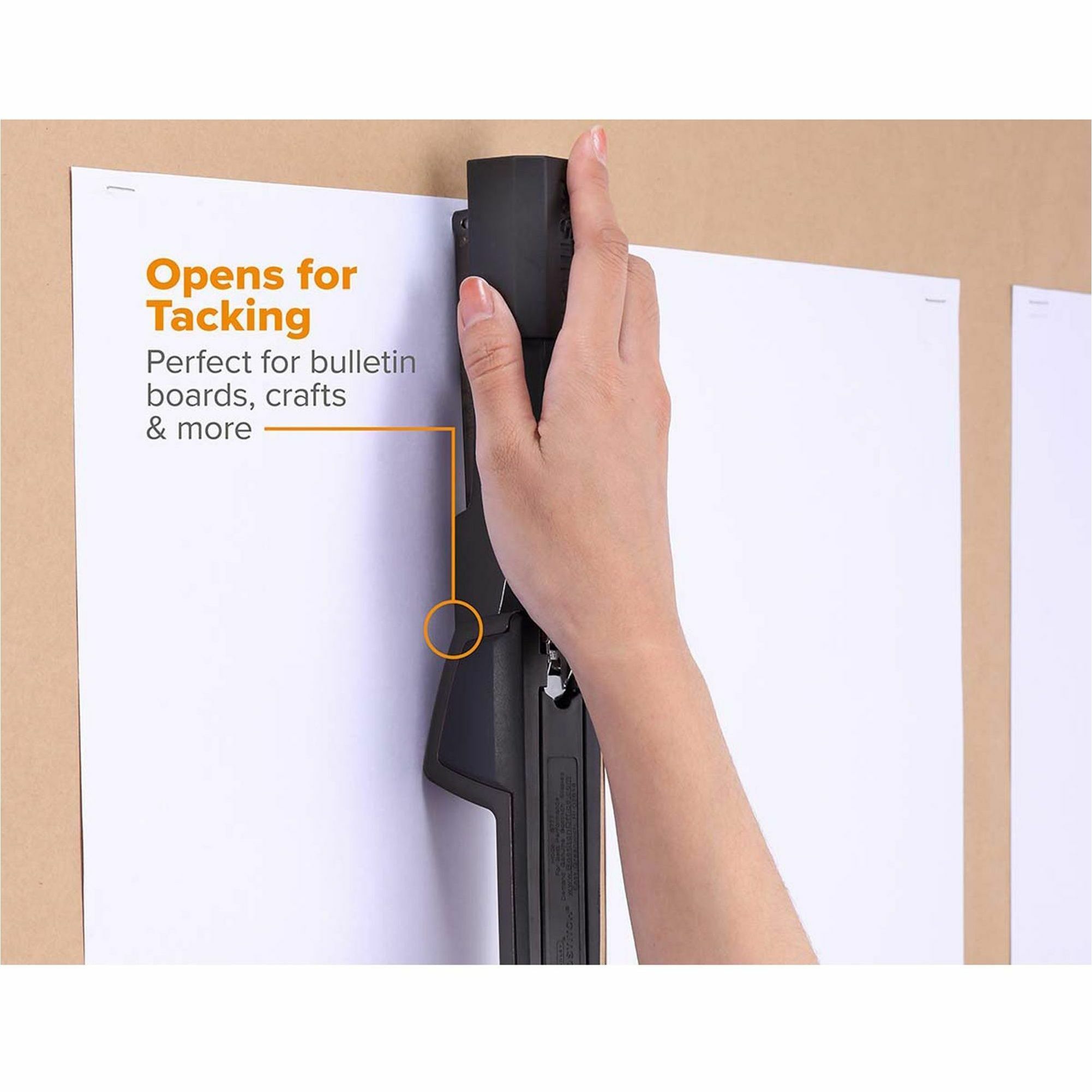 | Product Description | Epic Stapler offers ultimate durability and efficiency in a premium, classic design. Die-cast metal construction ensures long-lasting performance while soft rubber grip and base provide comfort during use. Antimicrobial protected, full-strip stapler delivers efficiency with a swing-out staple EZ Remover and a hidden StapleStore compartment on the bottom of the unit to keep two staple strips on hand. Accenting any desk, it stands vertically or horizontally for easy access and storage. This stapler opens 180 degrees for bulletin board tacking or crafting. It staples up to 25 sheets at a time. Full-strip staple capacity holds one strip of 210 standard staples. |