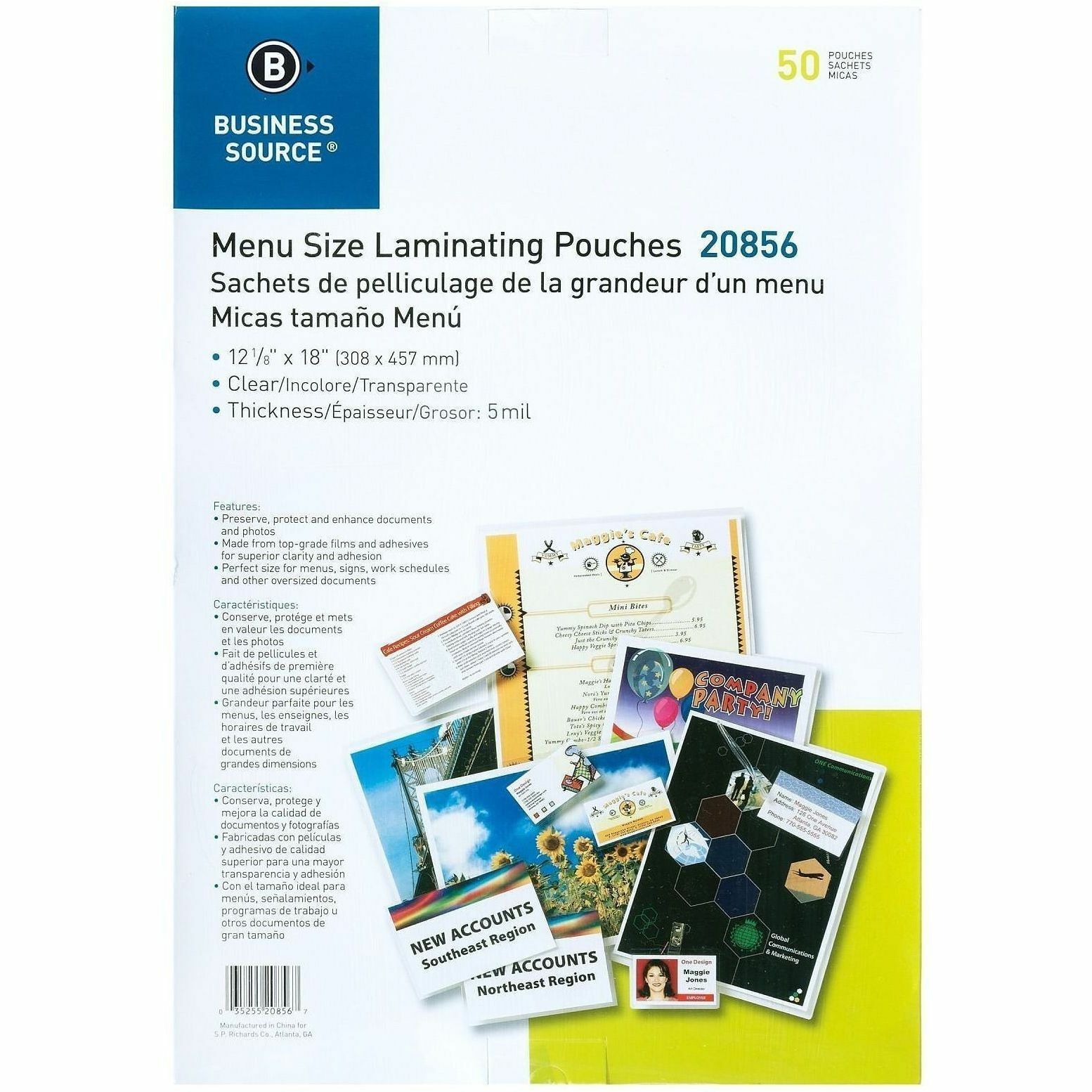 Laminating Pouch/Sheet Size: 12.13" Width x 18" Length x 5 mil Thickness - for Document, ID Badge, Photo, Recipe, Recipe Card - Pre-trimmed - Clear - 1 Box