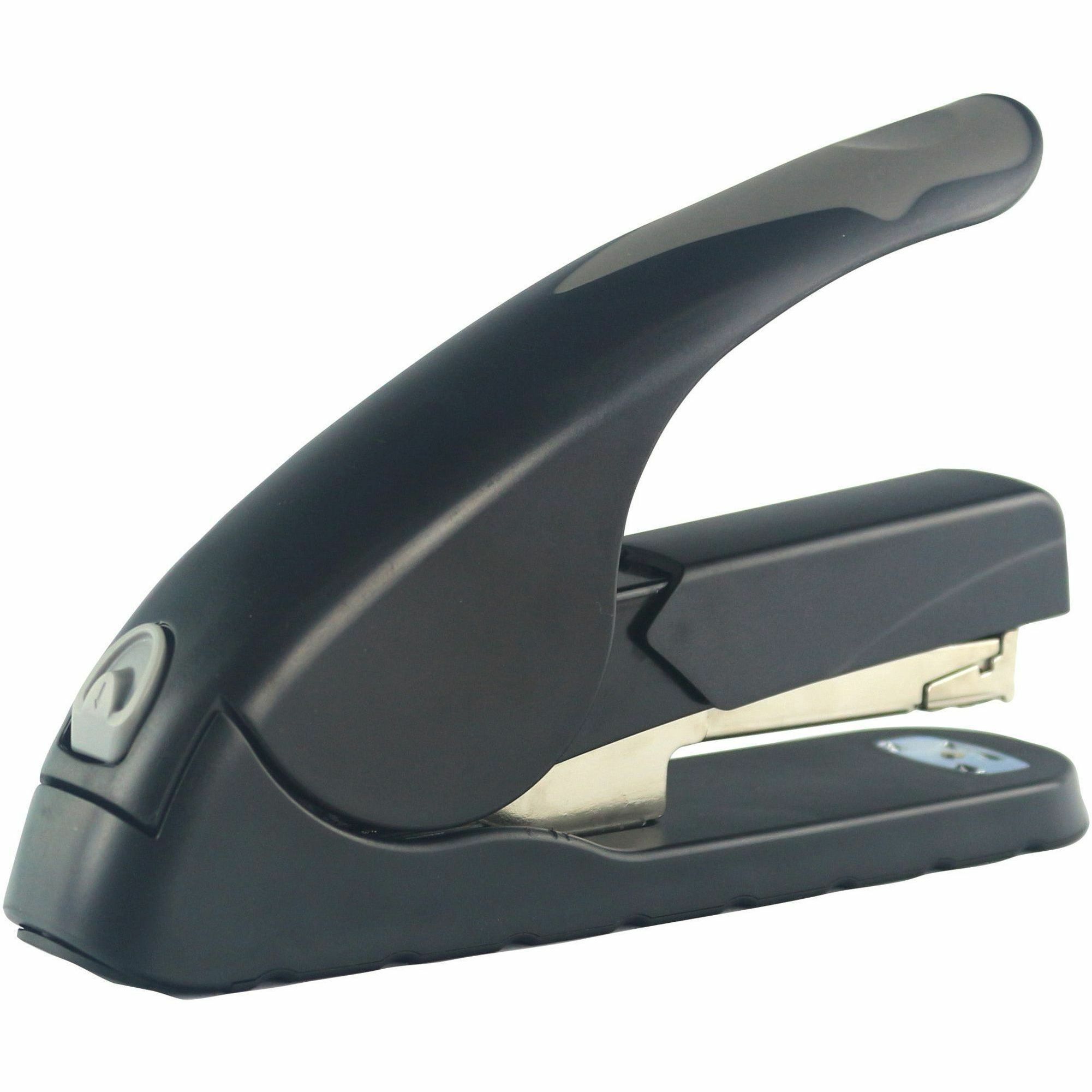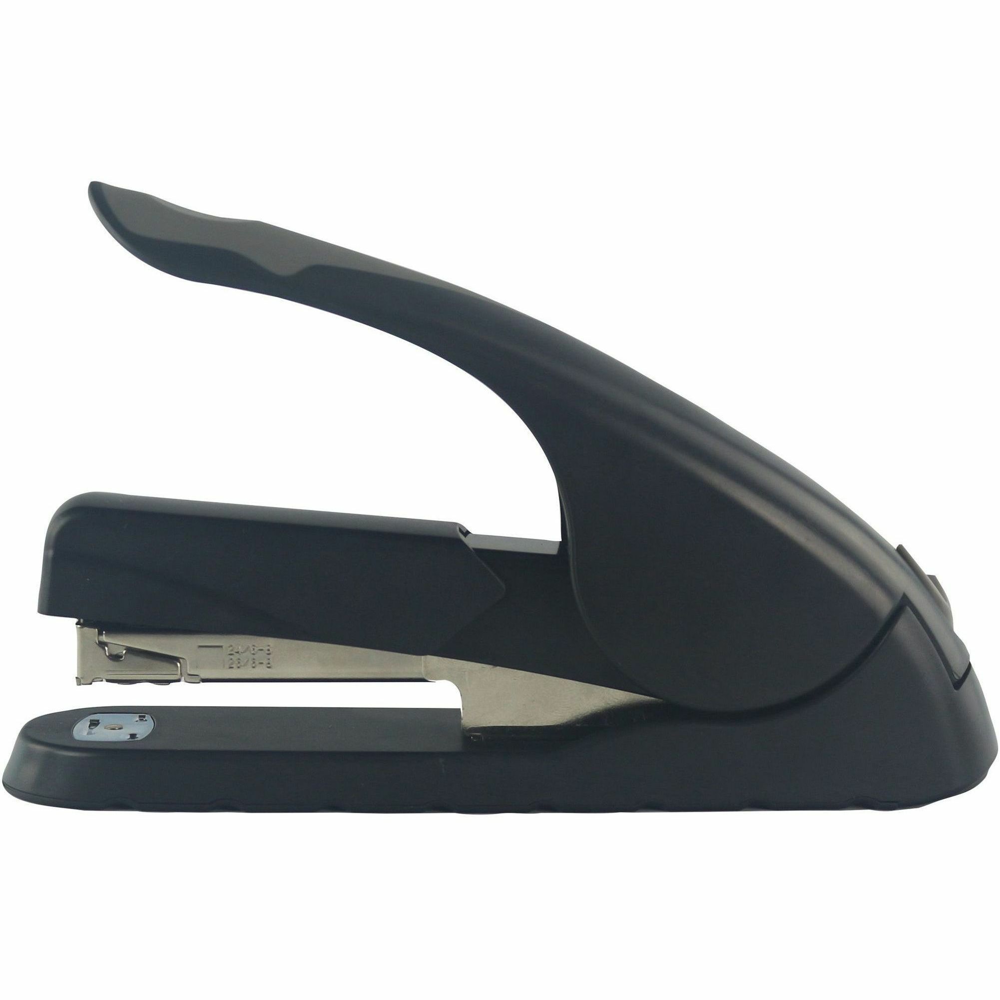 | Product Description | Full-strip stapler features finger-touch technology that takes 60 percent less effort. Stapler also uses both standard and high-strength staples. Standard-size staples (1/4" leg) fasten 20 sheets of 20 lb. paper. Use 5/16" staples to fasten 21 to 40 sheets. Front-loading stapler holds 210 staples. Push button releases staple magazine. Design also features an anti-slip base and rotary anvil. |