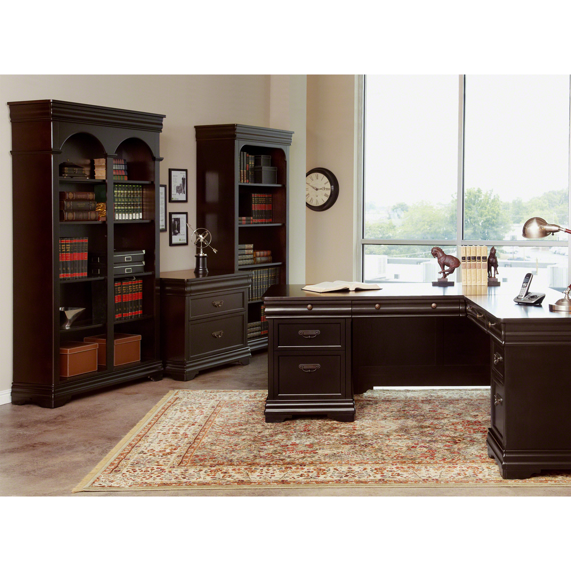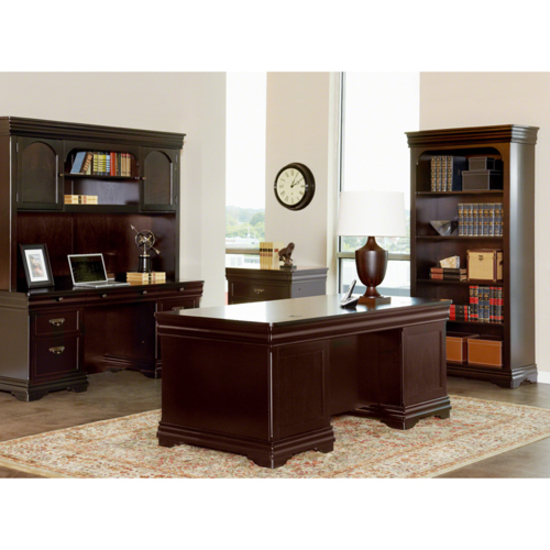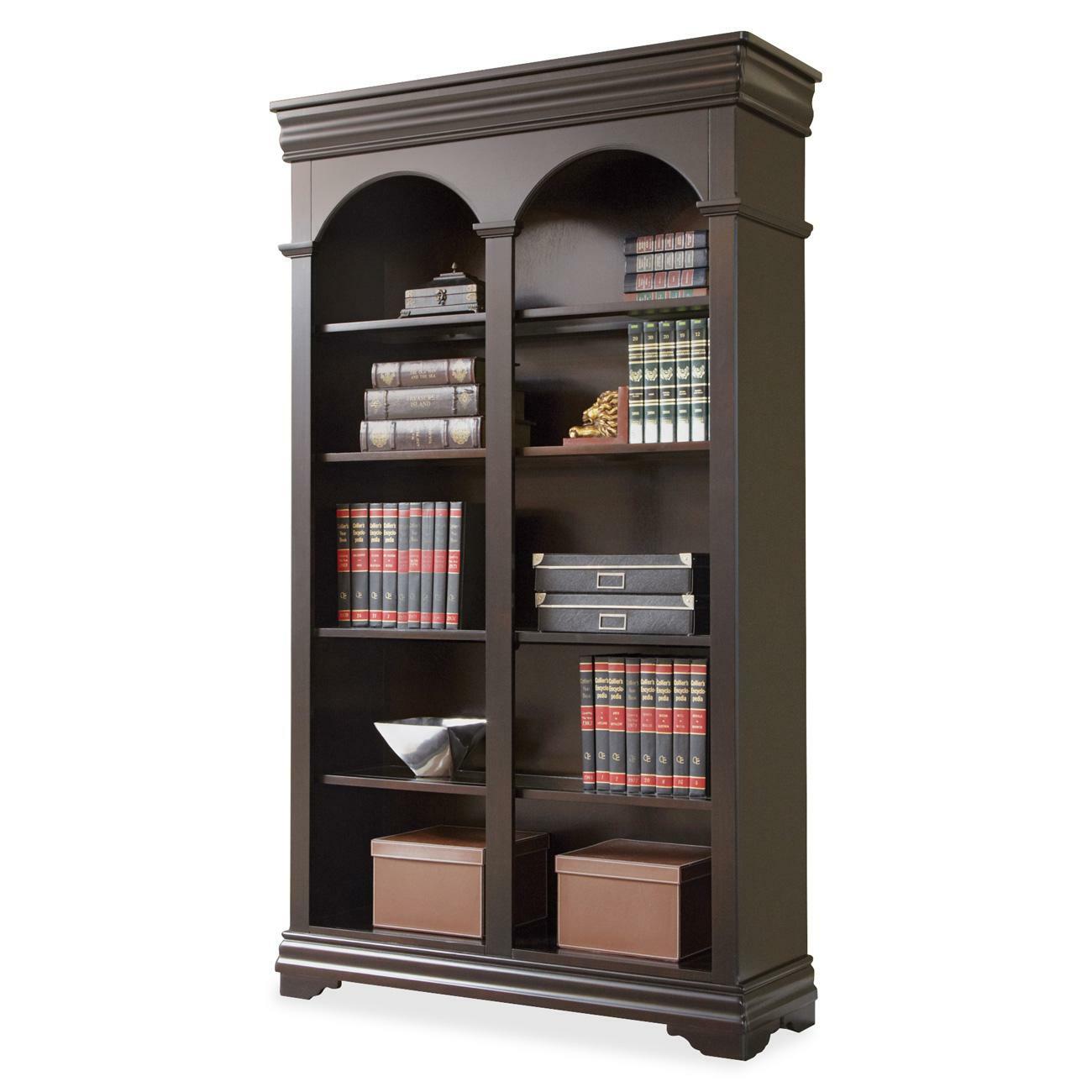 The Beaumont Double Open Bookcase offers classic, Louis Philippe style and superb craftsmanship to radiate warmth in your room. Four glass shelves with wood trim are adjustable to accommodate a variety of your belongings. Two center lights use a touch dimmer to provide just the right amount of illumination. Five-shelf bookcase pairs with lateral files, desks, credenzas, hutches and bridges from the Beaumont collection. |
