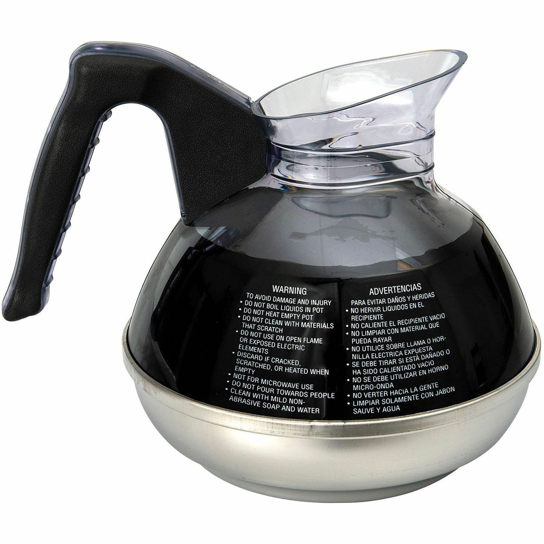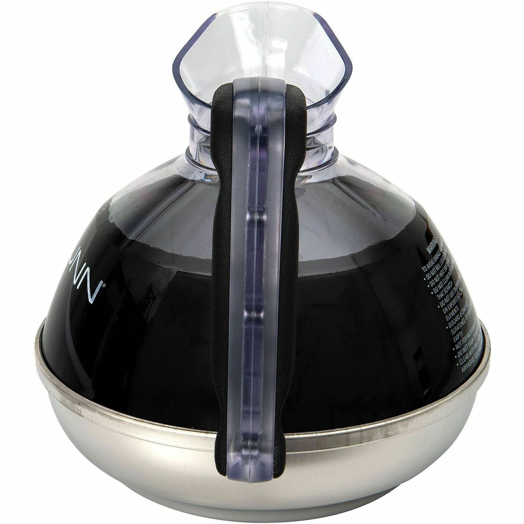 | Product Description | 12-cup decanter features a container and handle core molded as sturdy, extra-strength, one-piece construction for long life. Clear, high-impact-resistant material complies with FDA regulations for food contact. Drip-proof, fast-pour lip - an exclusive Bunn design - assures convenient serving and clean pouring from front or either side. Base is made of high-quality stainless steel. Unbreakable decanter is designed for use with Pour-O-Matic coffee brewers. |