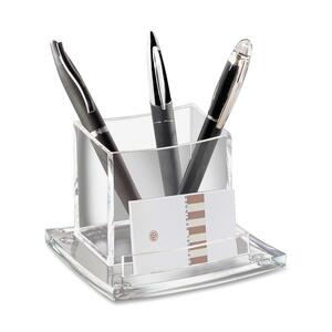 Sleek, refined pencil cup has been created and sculptured to capture light and add elegant professionalism to your desktop. Part of the AcryLight desk accessory collection, this high-quality, versatile holder is large enough to hold a mobile phone or up to 25 pens in the main box. A compartment at the front of the base can store up to 50 business cards or a pad of self-adhesive notes. The antislip pads on the bottom protect the desk. Acrylic material is recyclable. |