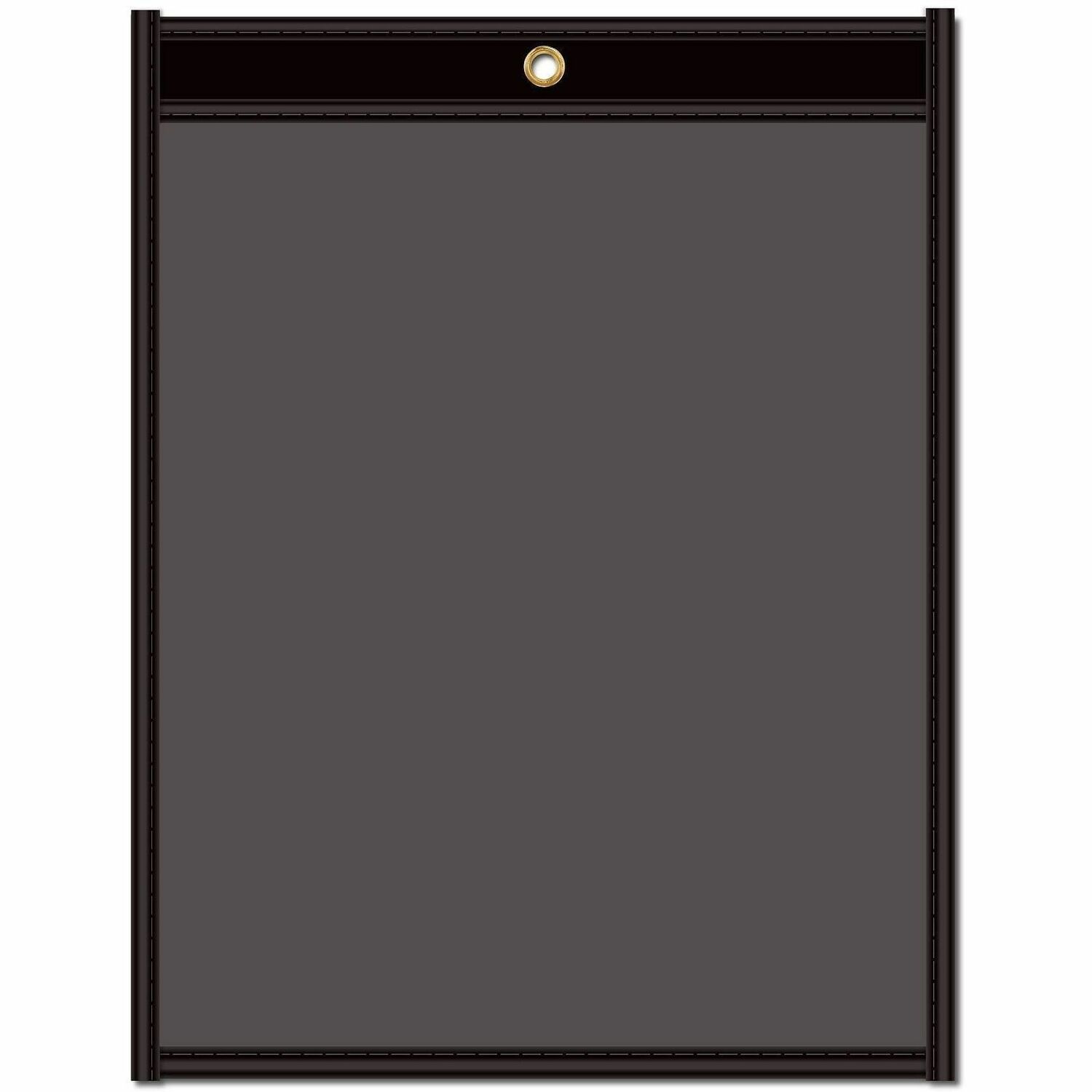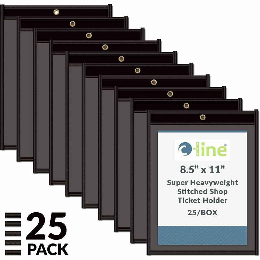 | Product Description | Store and protect work orders, production schedules, inventory cards and more in these stitched shop ticket holders. Strong, rigid, clear vinyl allows easy visibility of your documents. Convenient eyelet at top is perfect for hanging the ticket holders up for easy access. Reinforced stitched edge prolongs product life. Top-loading ticket holders open on the long side and feature a clear front with a black, Pressboard back. |