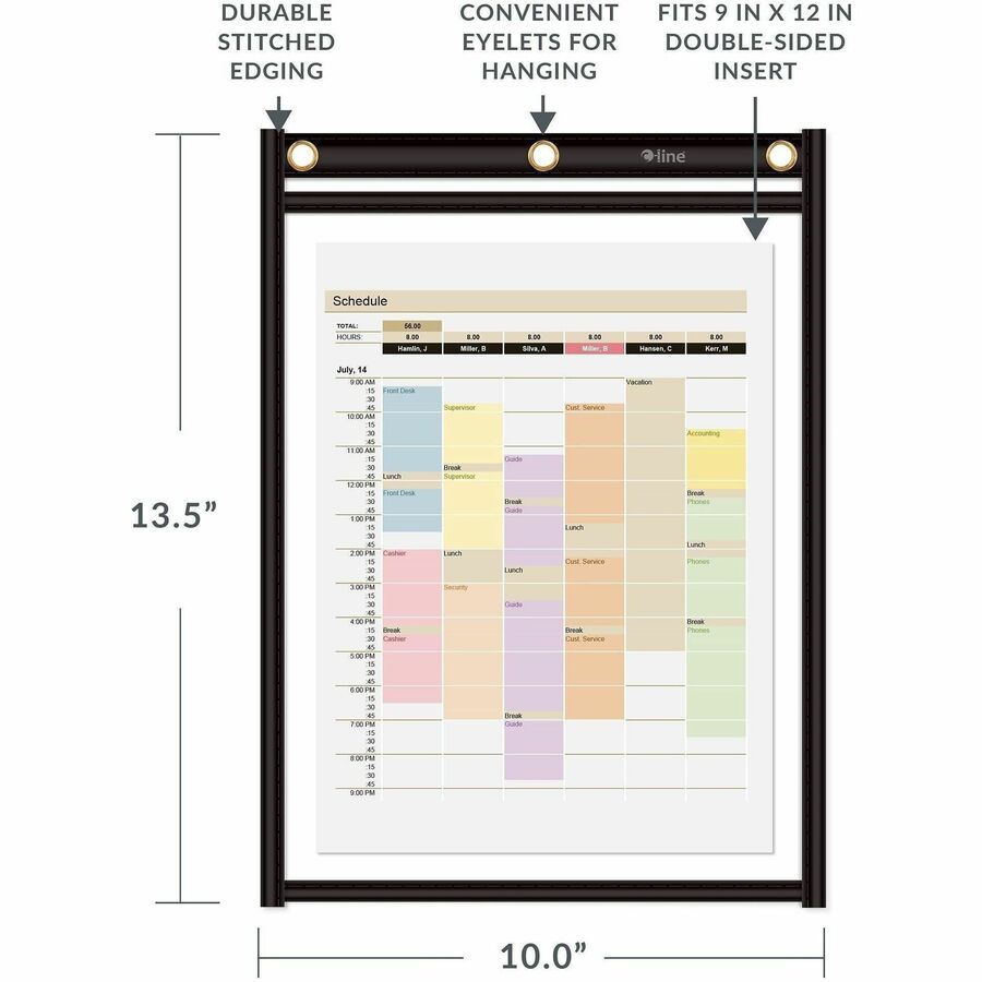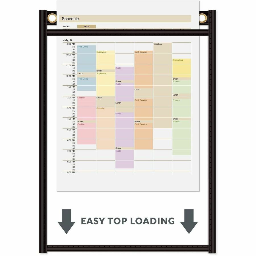| Product Description | Shop ticket holders make your special jobs stand out. Heavy-duty vinyl is transparent for complete front and back visibility. Reinforced header and stitched seams ensure long-lasting performance. Three eyelets allow multiple hanging positions for convenient display. Shop ticket holders are perfect for organizing work by department, day-of-the-week or importance. |