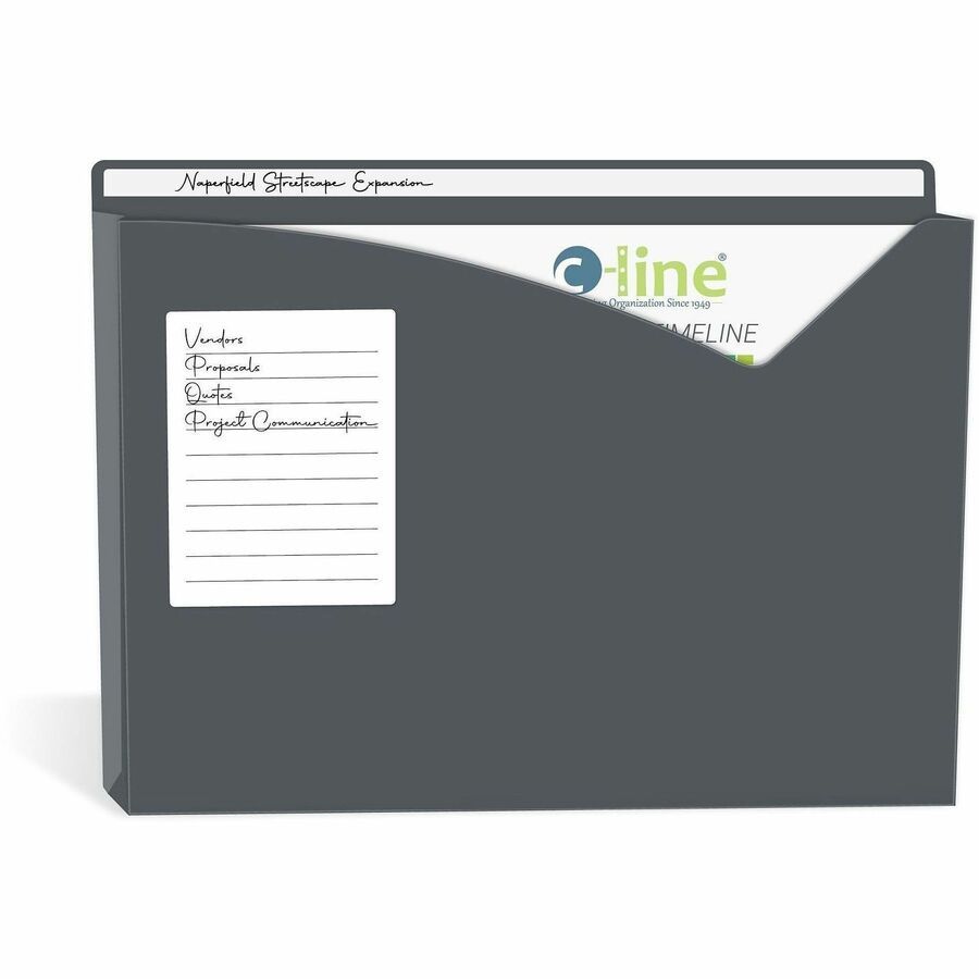 | Product Description | Expanding poly file folders make big filing jobs easier. Full-length tab and area on front allow easy identification of folder contents, thanks to write-on technology that works with pencil, ballpoint pen or permanent marker. Designer V-cut front provides convenient access to documents inside. Bright colors make it easy to find the folder you need with an assortment of amber orange, lime green, charcoal gray, raspberry red and steel blue. Folder is sealed on three sides and features a 1" expansion to hold up to 225 sheets. |