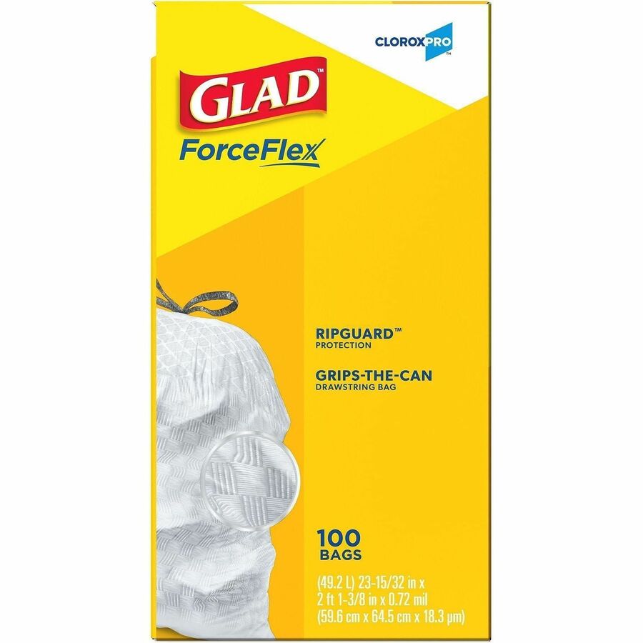 | Product Description | Keep your trash contained with the durability and quality of these Glad Tall Kitchen Drawstring Trash bags. ForceFlex technology gives extra flex as it expands around sharp edges and heavy loads to let you pack it in without ripping. Dual-layered construction RipGuard and LeakGuard technology resists punctures, rips and tears, and the seepage of liquids. The Grips-The-Can Drawstring ensures that the bag stays in place and provides a three-ply handle to easily lift, carry and toss the bag. Tough and resilient, Glad can handle some abuse so shake the trash deeper into the bag while keeping everything contained. The 13-gallon size is perfect for the kitchen or throughout the office and is great for your seasonal cleaning needs. |