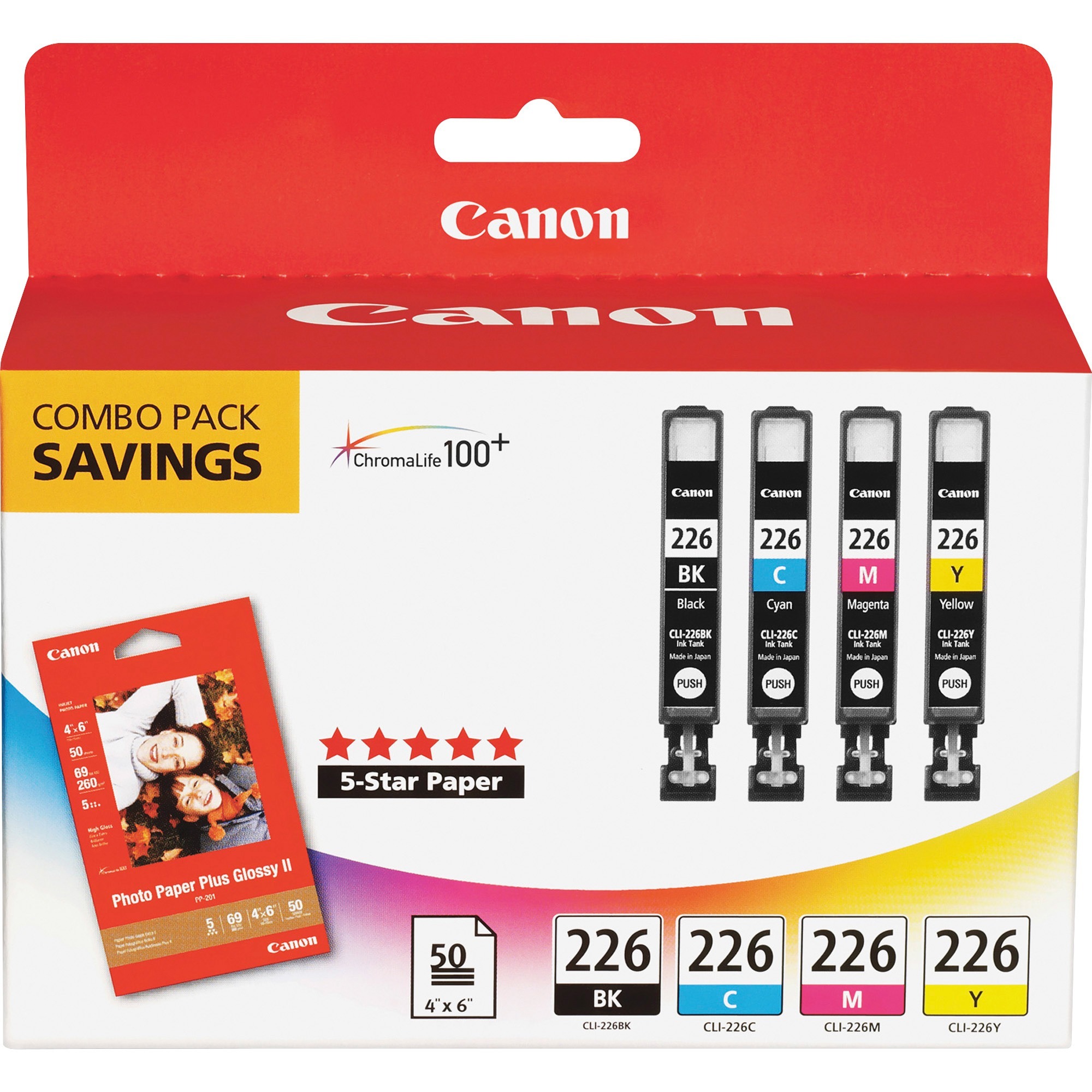 Canon CLI-226 Original Inkjet Ink Cartridge/Paper Kit - Value Pack - Black, Cyan, Magenta, Yellow - 4 / Pack