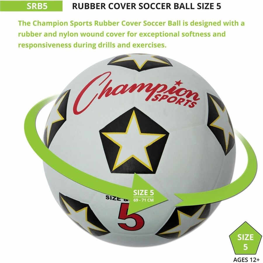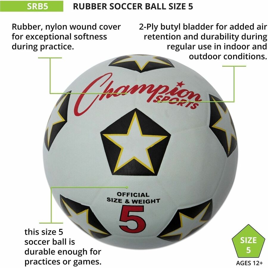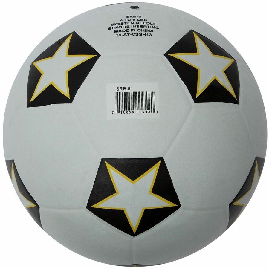 | Product Description | Soccer ball is great for training and skill-building and recreational play. Heavy-duty construction features a water-resistant rubber cover and a nylon-wound, two-ply butyl bladder. Size 5 ball comes in black and white with red lettering. |