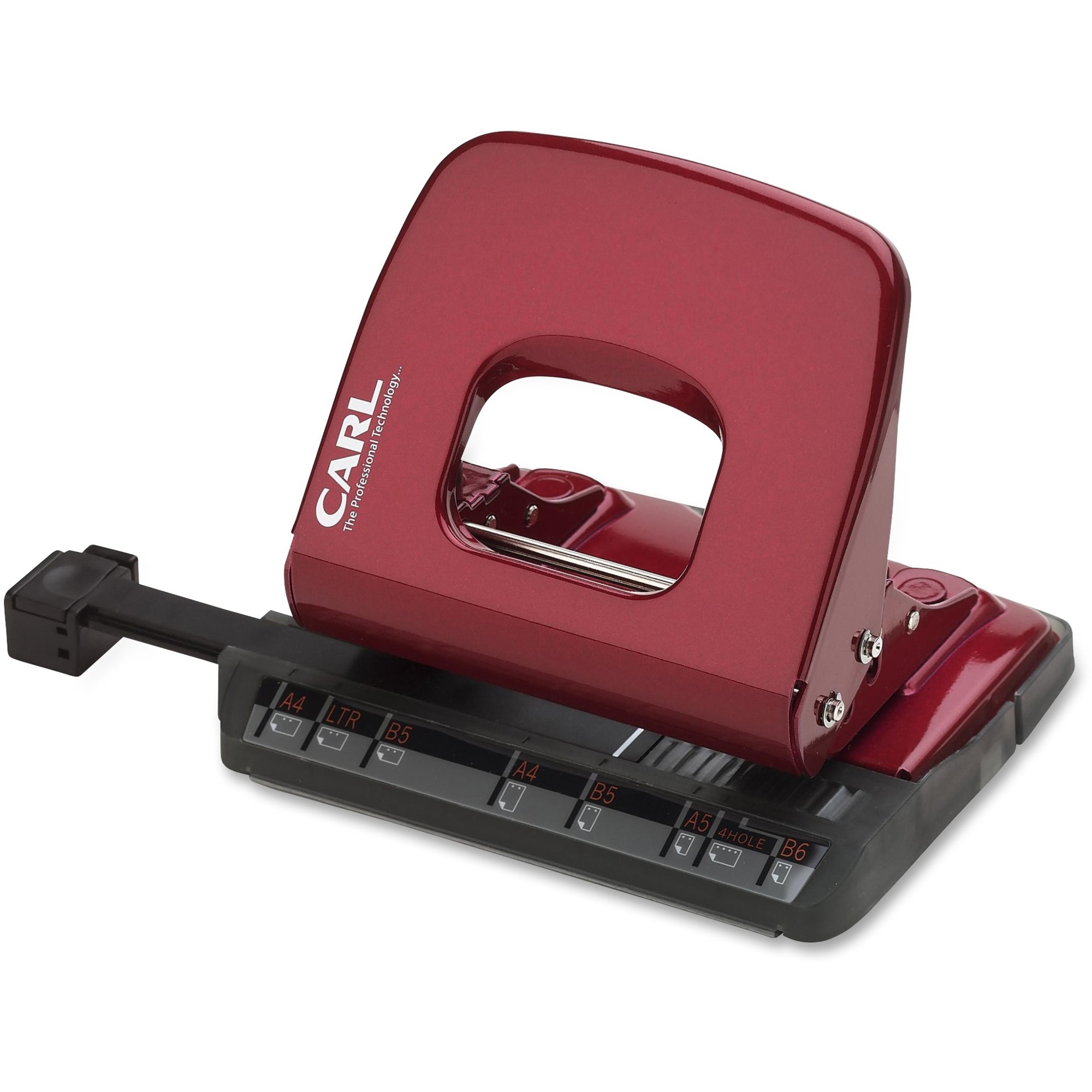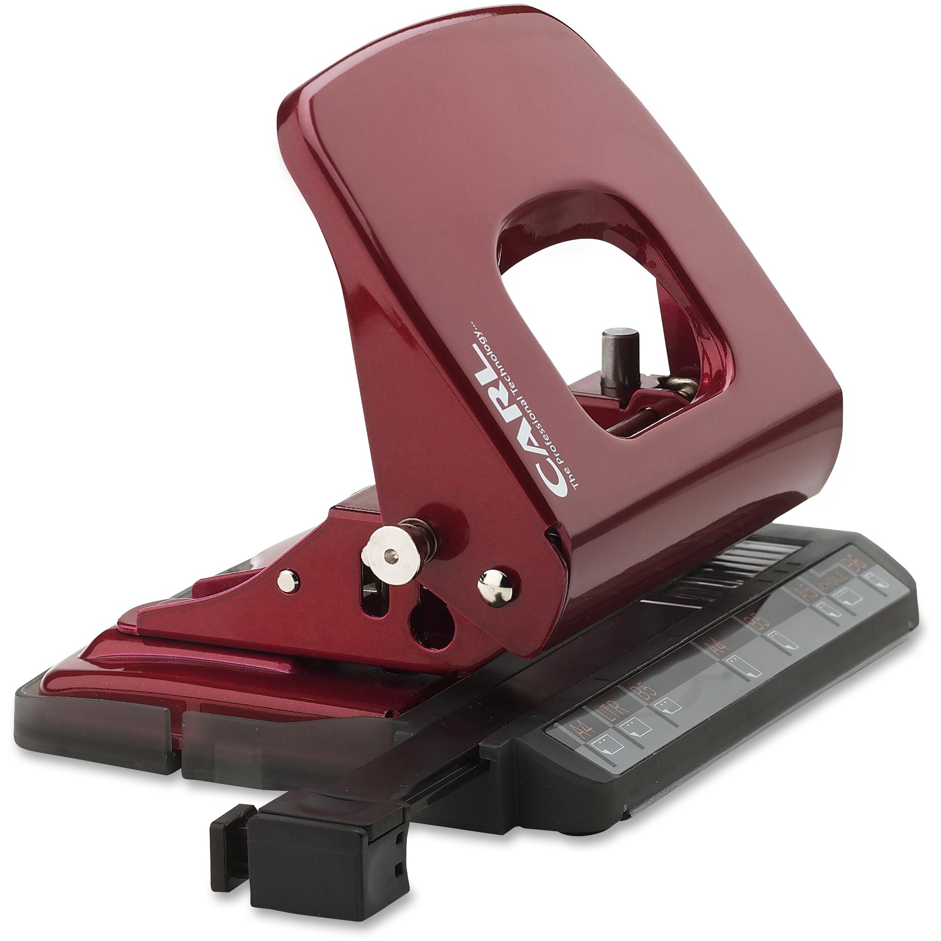 Colorful two-hole punch makes hole-punching stylish and 50 percent easier with the double-lever design. The Assist Link System (Alysis) is equipped with additional punch leverage for little effort when punching. Two-hole punch drills holes through up to 18 sheets at a time. |