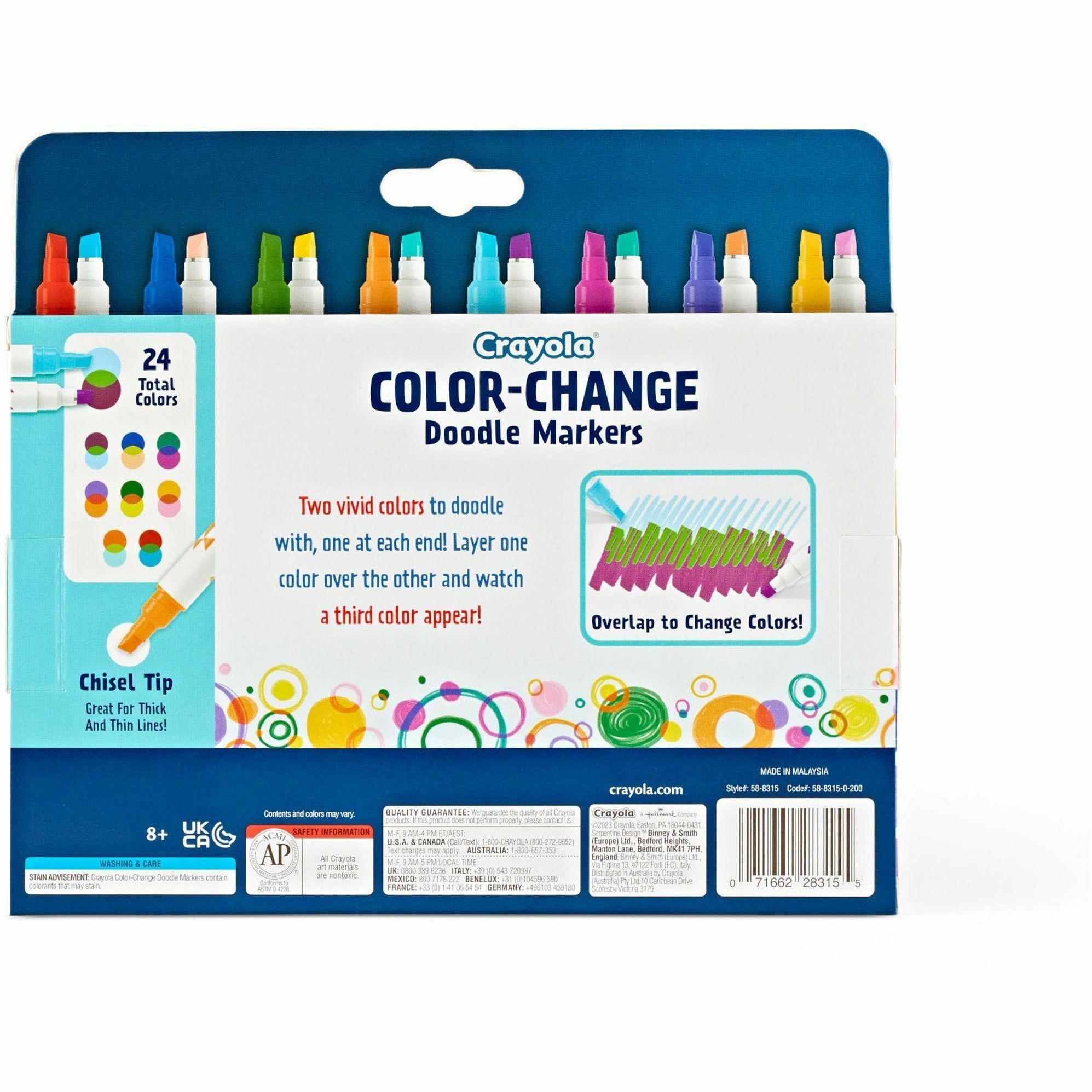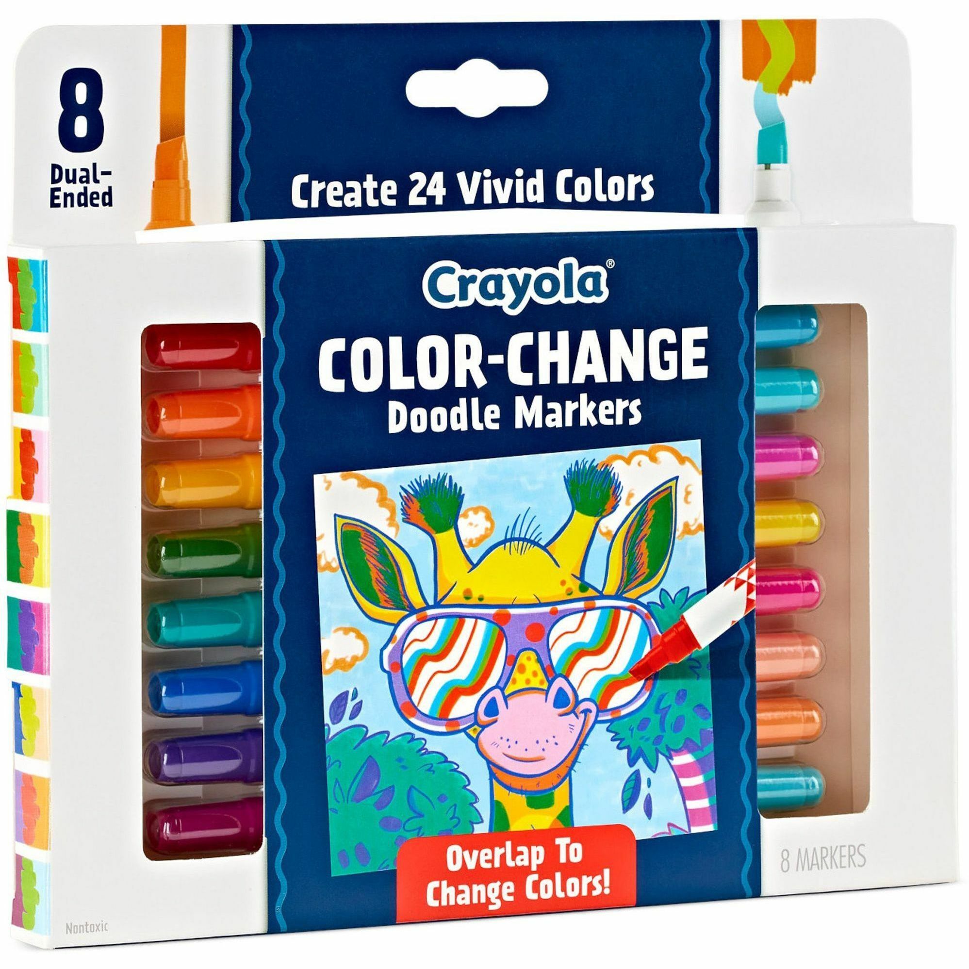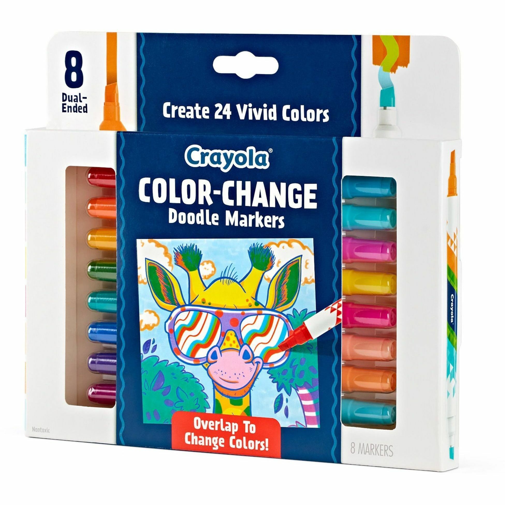 | Product Description | Play with color using the Color Change Doodle Markers that offer 24 vivid colors in total. To get started, simply layer one color on top of another and watch as an entirely new third color emerges. Make thick or thin lines with the chisel tip ends. Coloring or doodling with these dual-ended markers is a fun way to create with color. |