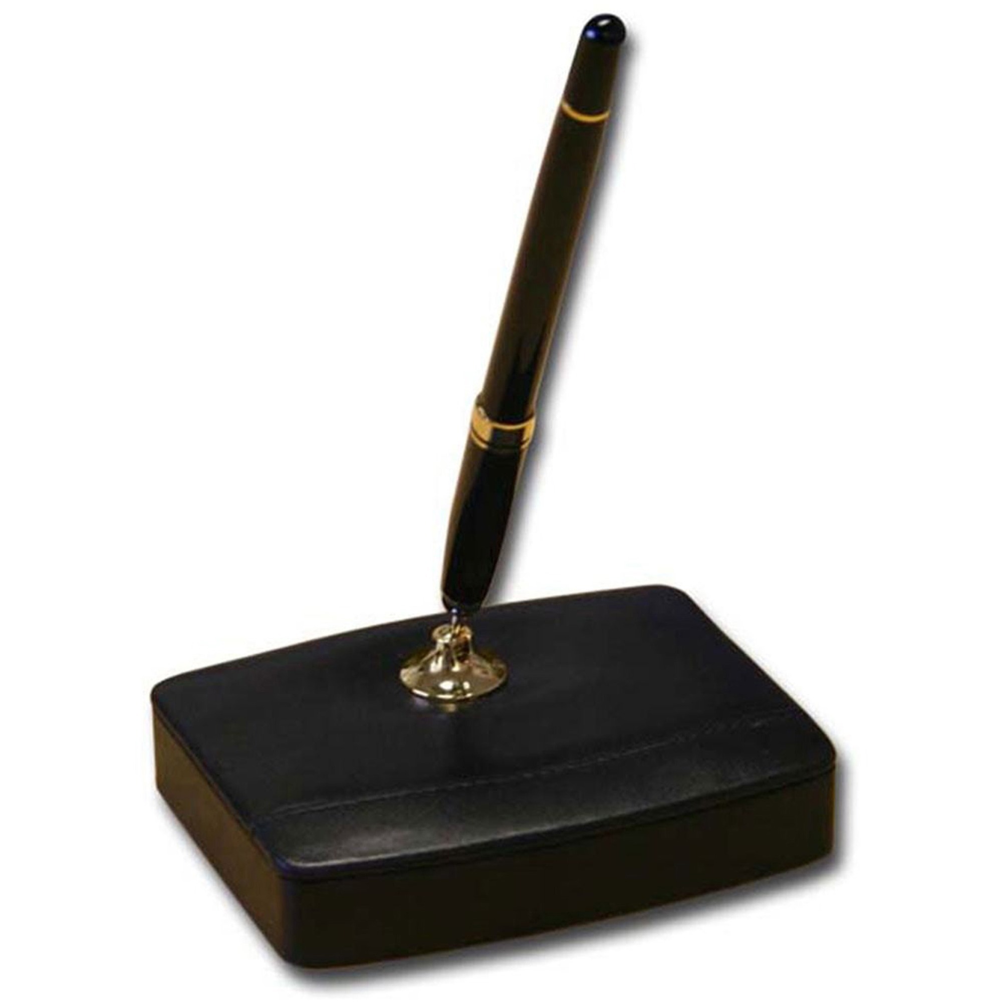 | Product Description | Single pen stand with gold accents features a top-grain leather exterior for a timeless way to provide your guests with a writing utensil. Smooth velveteen lining on the bottom offers excellent protection where you need it most. Pen stand with included rolling ball pen is compatible with Pentel Excalibur, Itoya and Mont Blanc 163 rolling ball pen refills (sold separately). |