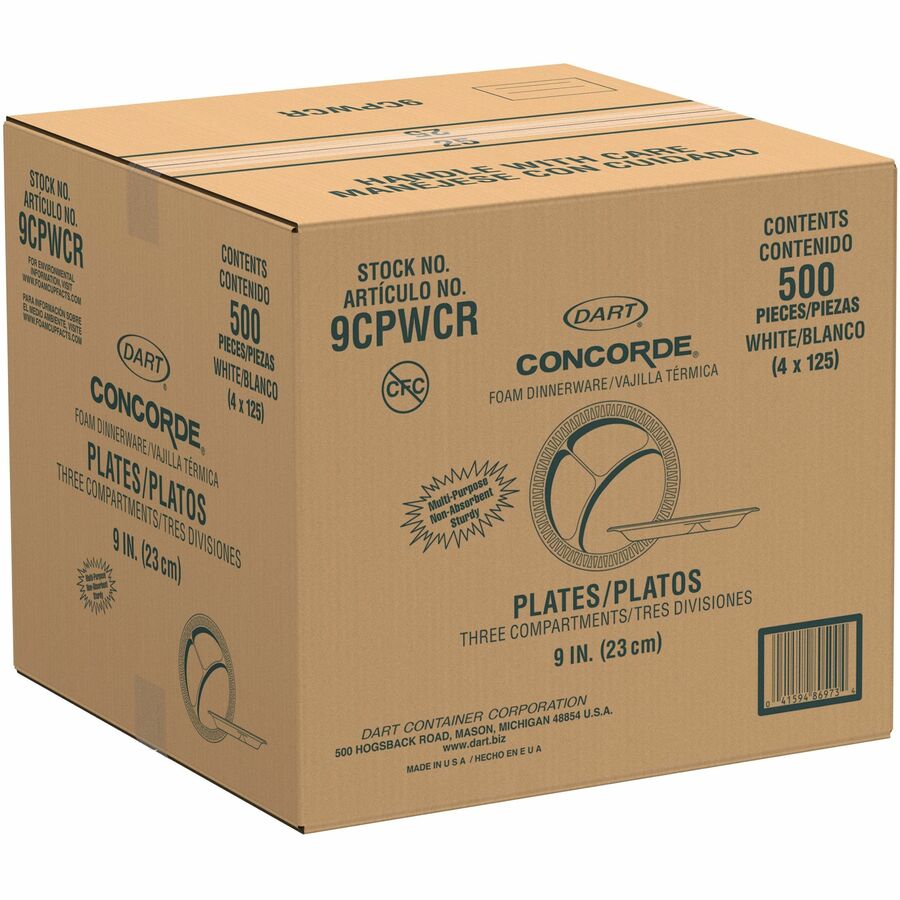 Dart Concorde 9" Nonlaminated Foam 3-Compartment Plates