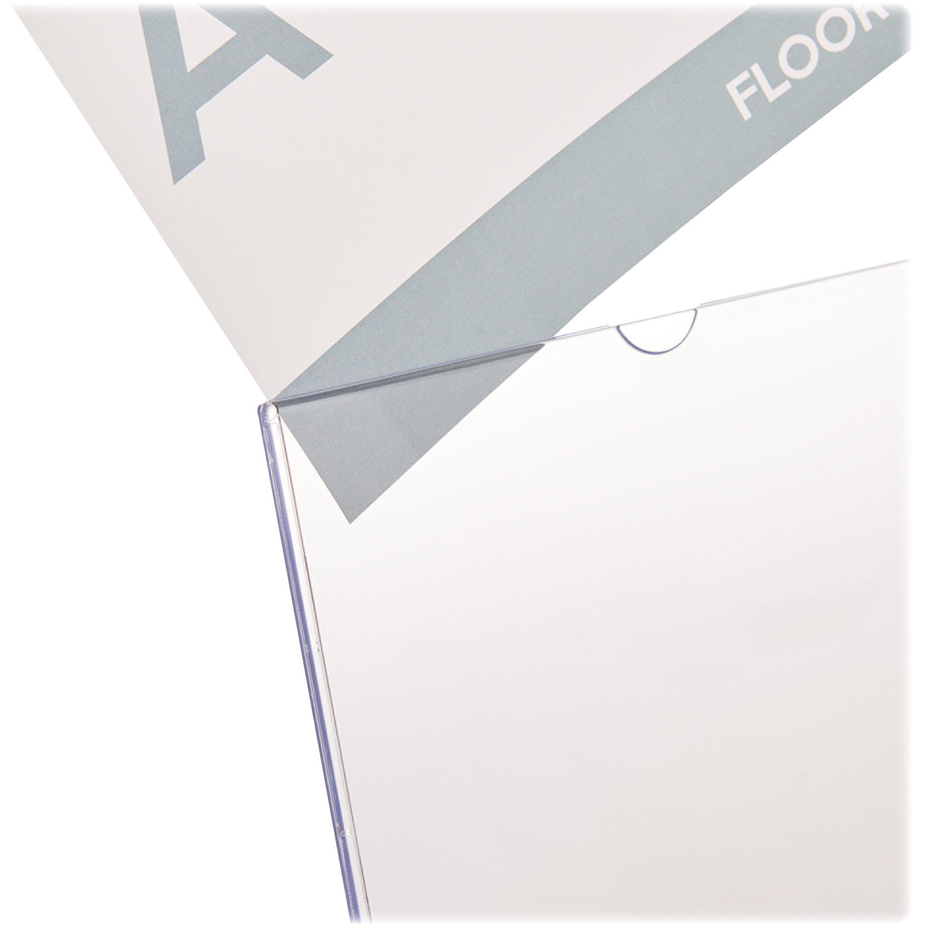 | Product Description | Slanted sign holder with literature pocket saves space while promoting literature. Free online templates are available. Top entry allows easy access to change sign as needed. Sign is sealed on bottom and sides to keep literature from slipping out. Polished edges offer a quality look, enhancing your message. Sign holder is made of clear plastic. Smooth, thick panels offer added durability |