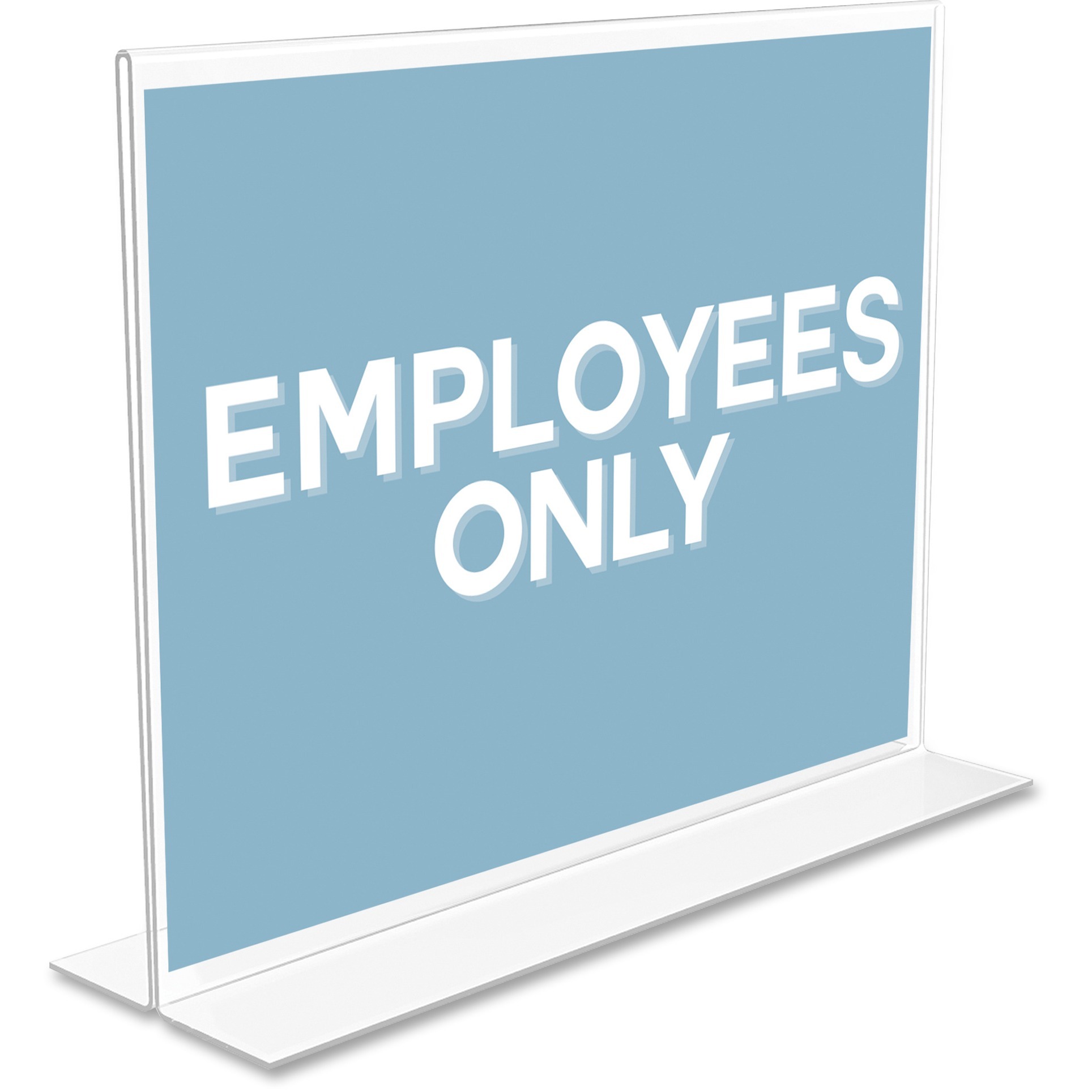 Stand-up sign holder is ideal for retailers, restaurants, trade shows and hospitals. Bottom-loading, self-standing design makes it easy to use. Sign holder requires no hardware to install. Simply insert sign and set on counter or desktop. Transparent sign holder is made of durable, clear plastic. |