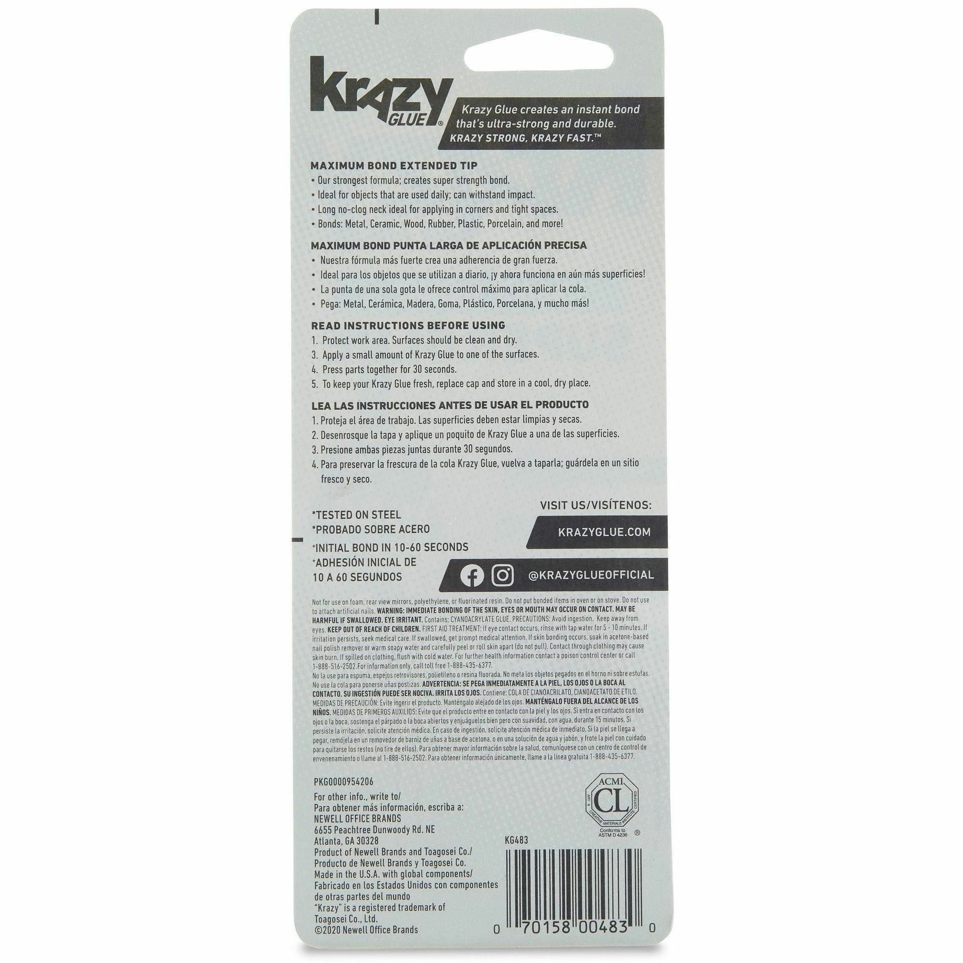 | Product Description | Extra-strength, advanced formula Krazy Glue provides an extra strong, durable shock-resistant bond. The precision tip applicator has an extended, no-clog tip with an easy-open, easy-seal hanger cap to reach tight spots. The large size and sure-grip panel on the container make it easy to apply. Ideal for ceramics, wood, plastic (PVC, ABV, ERP), rubber, metal, and glass. |