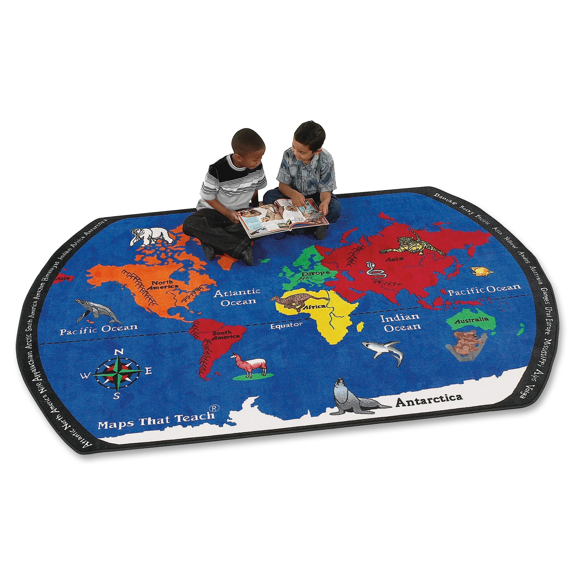 | Product Description | Global rug puts Earth's layout at your feet to provide a handy resource for inquisitive minds. Densitech construction offers a high fiber density to maintain an excellent level of strength through daily use. Antimicrobial treatment helps you maintain a germ-free environment by guarding against odor, mildew and mold. Nylon material is infused with Nexatron dye to ensure bright, lasting colors. Scotchgard Protector resists heavy soils so you can more effectively clean the rug after spills and accidents. |