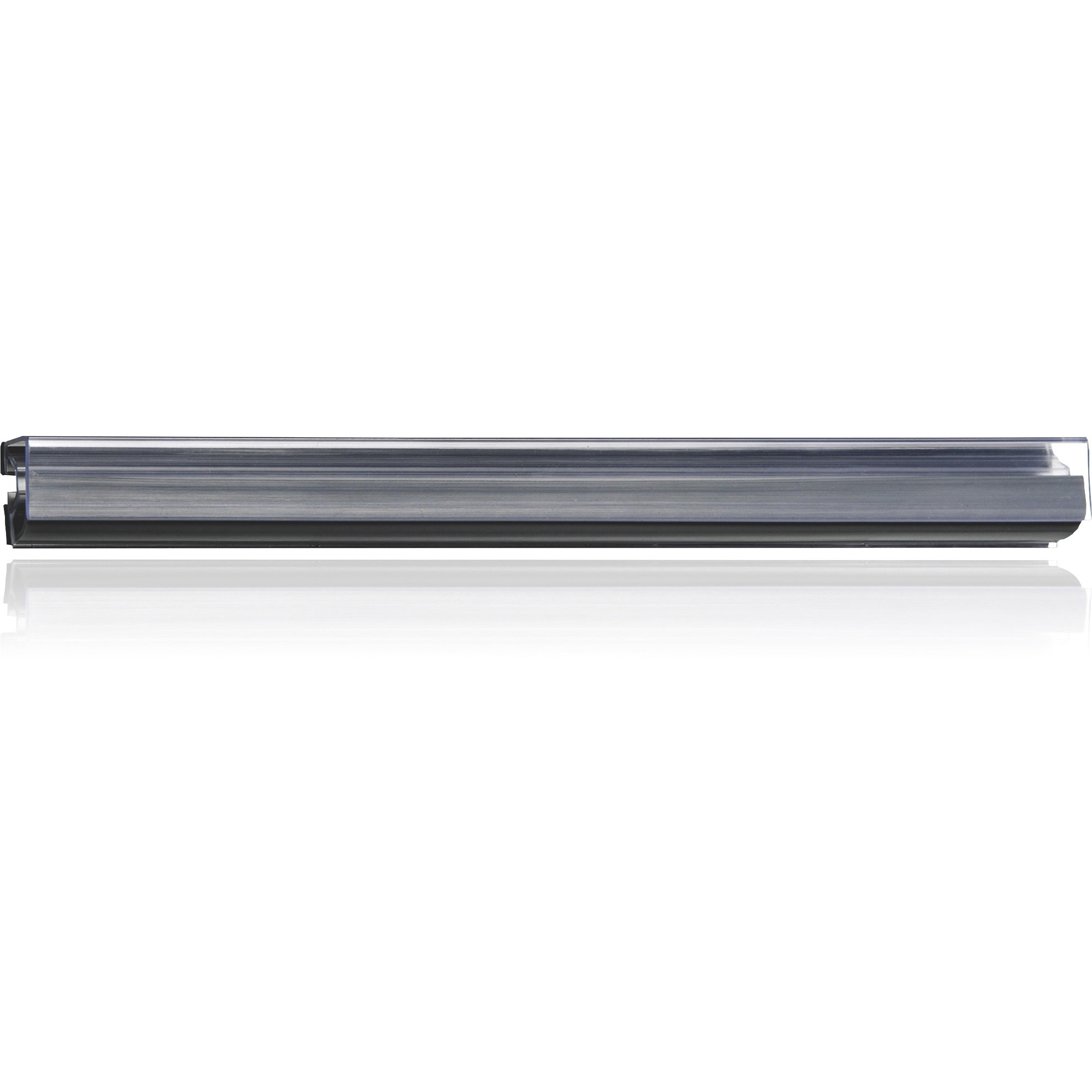 | Product Description | Display rail features a patented design that grips thick and thin items side by side without tearing or damaging them. Design requires no tape, tacks or pushpins. Transparent front allows entire item to show through. Display rail attaches with included double-sided tape or screws, and blends with any wall or surface. |