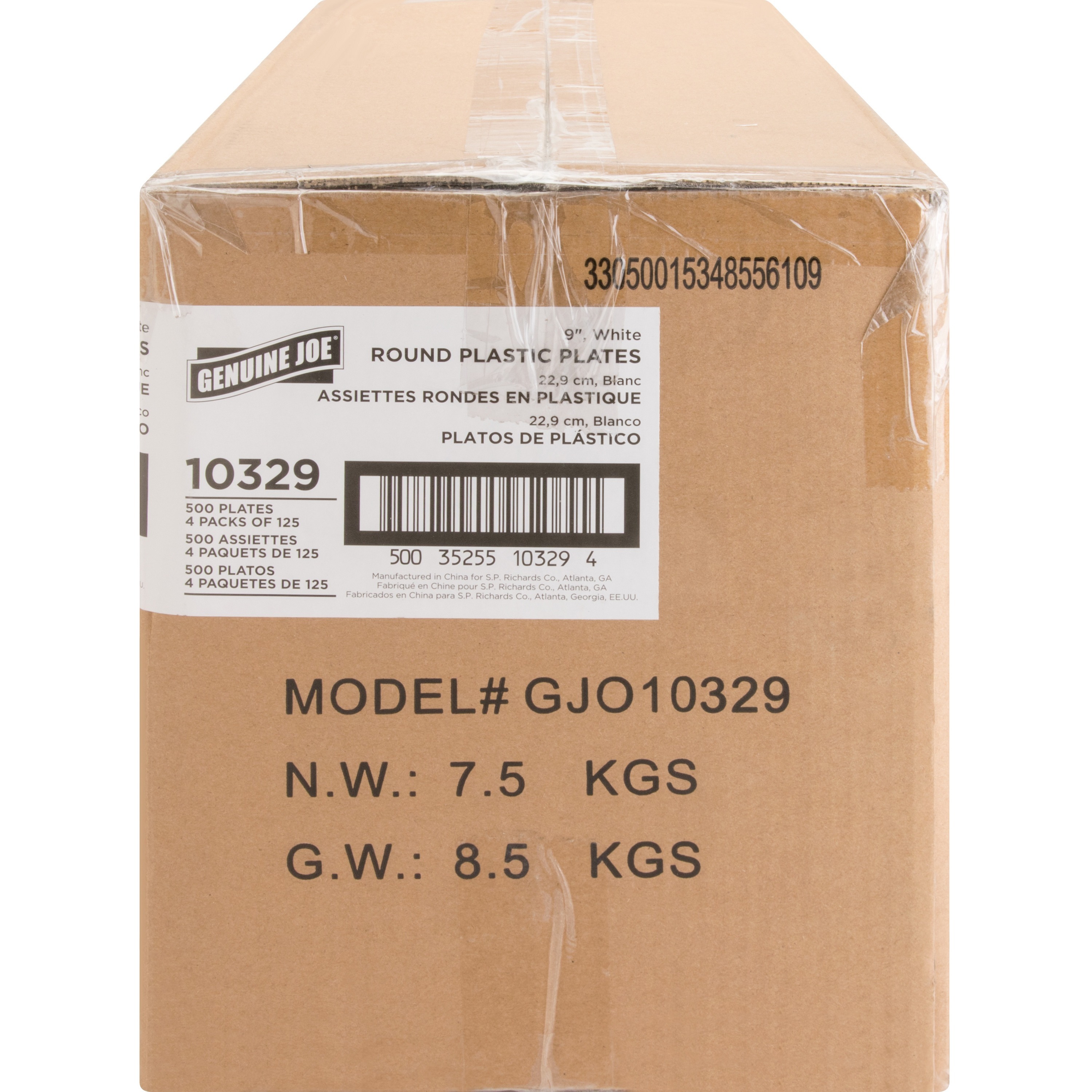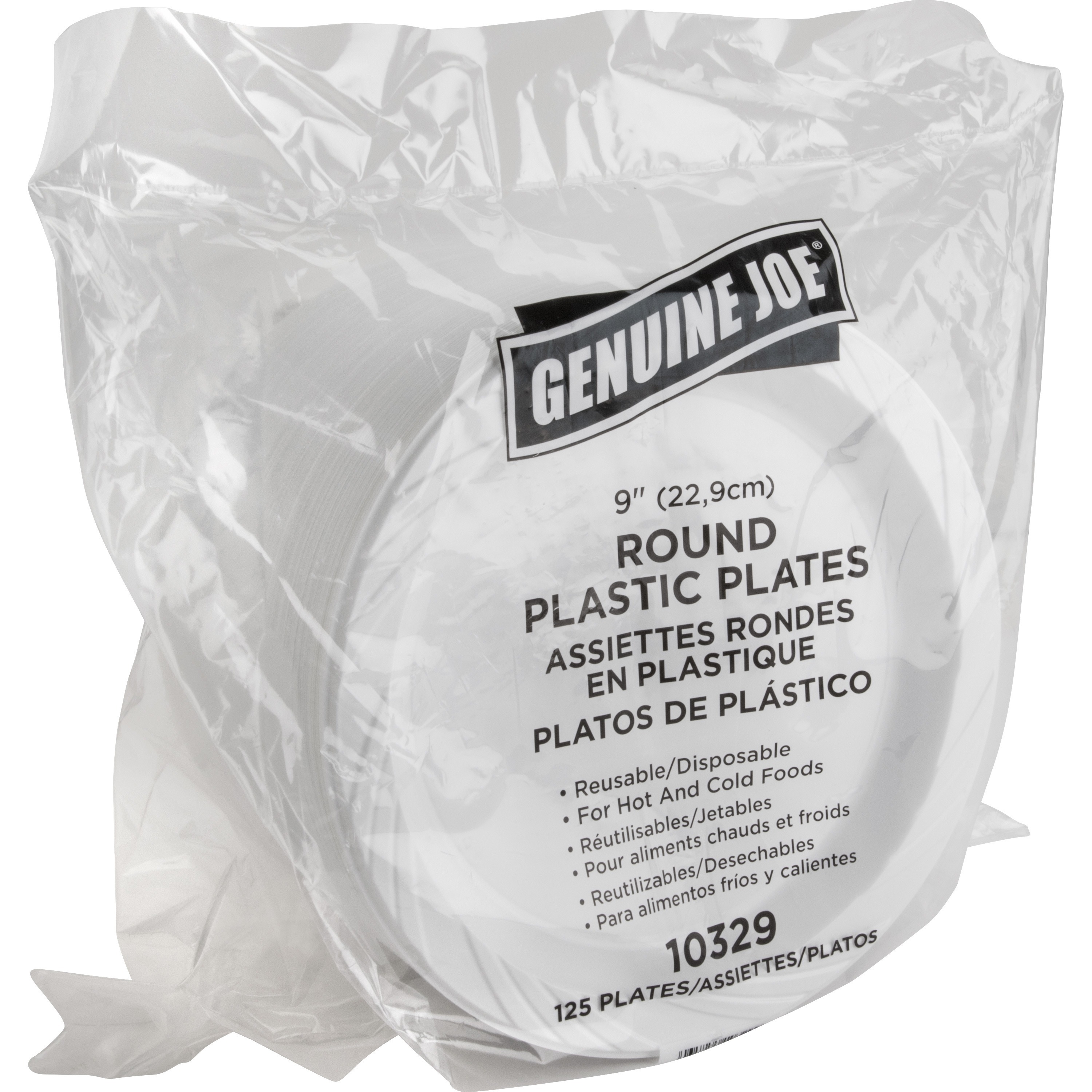 | Product Description | Plates are ideal for breakrooms, parties and picnics. Plastic material will hold large servings of hot or cold foods. Easy-to-clean, 9" plates are reusable and disposable. |