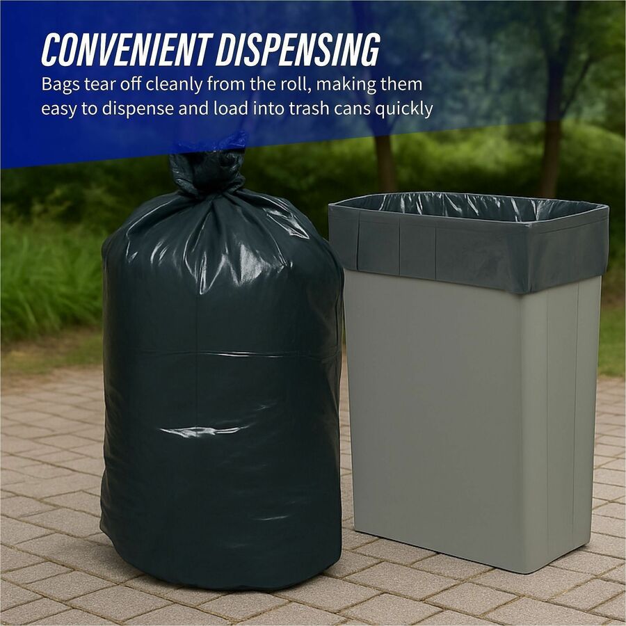 - Low-density, 23-gallon capacity liners for heavy trash applications