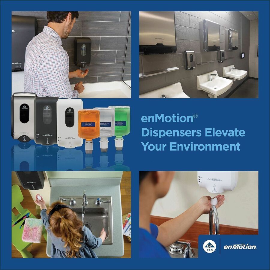 enMotion Gen 2 Gentle Foam Soap with Moisturizers features a rich foaming lather and mild conditioning formula that leaves skin feeling fresh and is gentle enough for daily use. Closed hygienic refill bottles install with one hand and dispense at least 99-percent of foam product before replacement is needed. Use with compatible enMotion® Automated Touchless Soap Dispensers (52057, 52058 and 52060) (not included). |