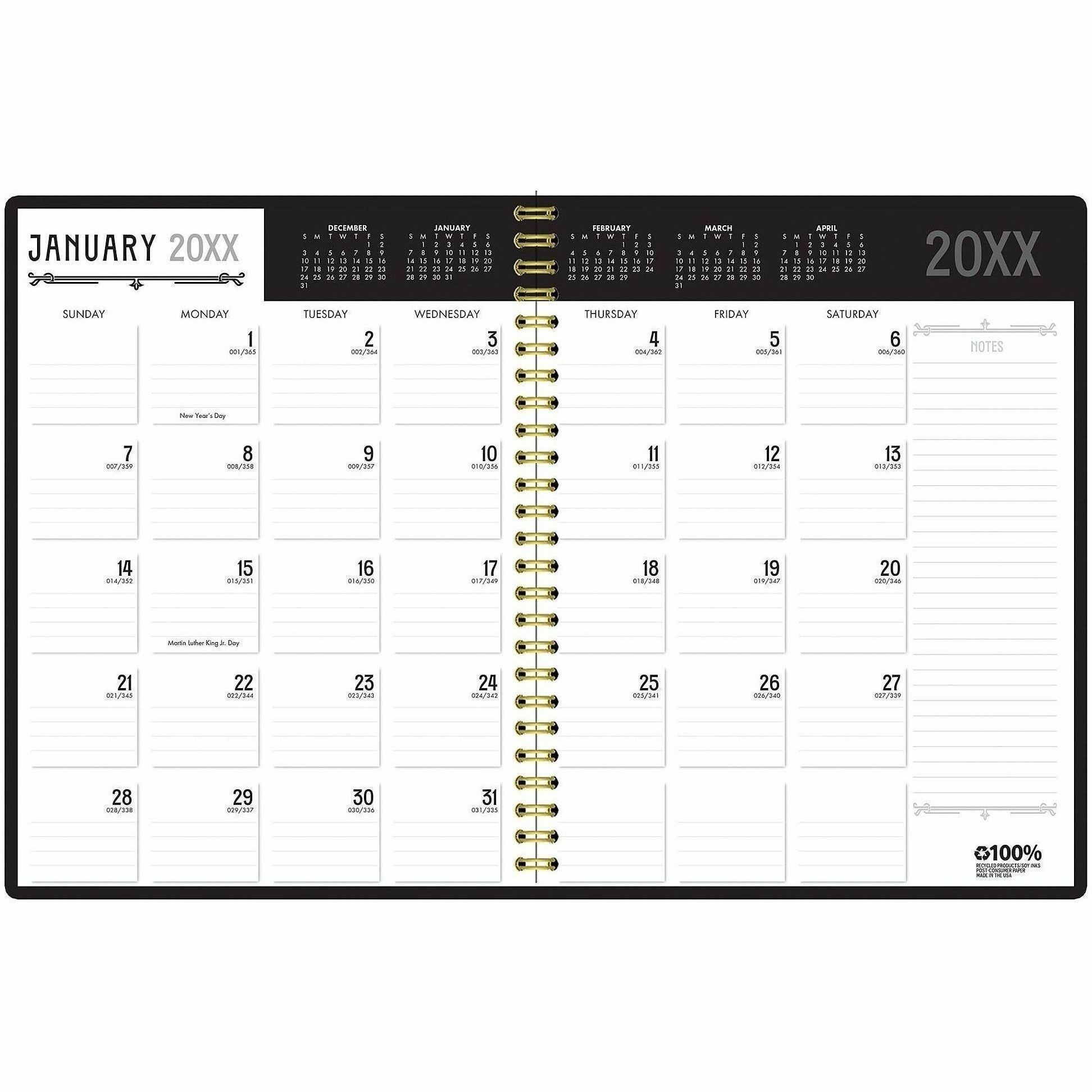 Julian Dates - Monthly - 14 Month - December 2025 to January 2027 - Sunday, Saturday - 1 Month Double Page Layout - 11" x 8 1/2" Sheet Size - 1.69" x 1.63" Block - Wire Bound - Black - Black Leather Cover - Dated Planning Page, Ruled Daily Block, Reference Month, Double-sided Pocket, Storage Pocket, Reference Sheet, Embossed, Holiday Listing - 1 Each